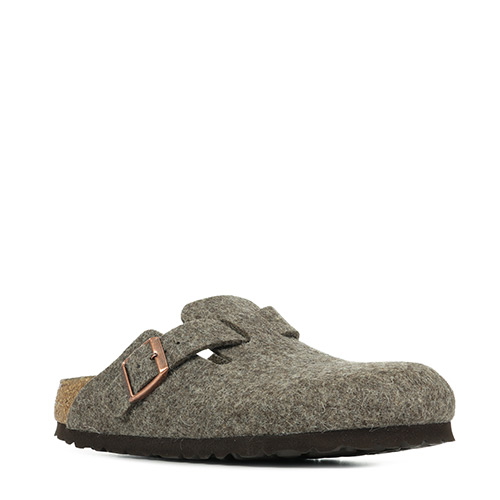 Le sabot Boston, un classique parmi les modèles de BIRKENSTOCK, se présente ici avec un tige en feutre de laine doux et de grande qualité. À l'aide de la bride intégrée à la bordure supérieure de la tige et d'une solide boucle en métal, le sabot s'adapte à chaque pied de manière individuelle.