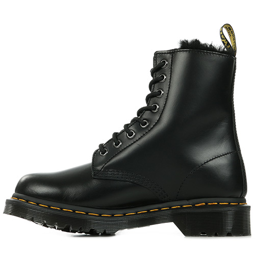 Préparez-vous à affronter l’hiver : La version adaptée pour l’hiver des bottes classiques à 8 œillets de Dr. Martens, avec une semelle ultra-résistante et une structure commando pour offrir une parfaite adhérence. La doublure en fausse fourrure blanche apporte chaleur et douceur.