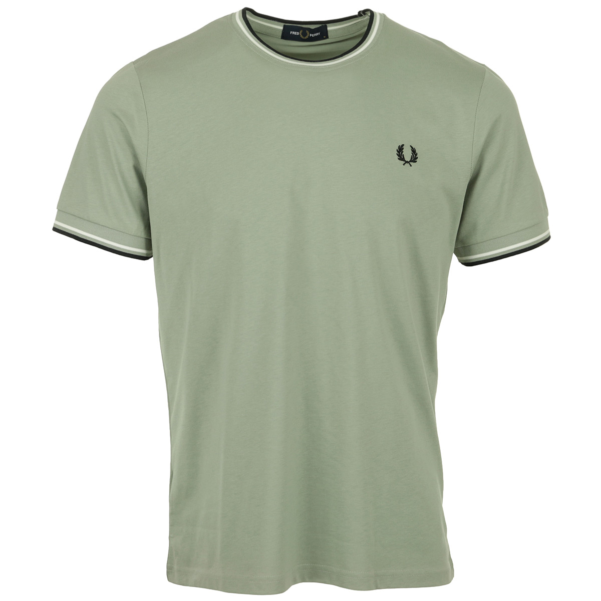 D'après la légende, le double liseré doit son existence à un acheteur de chez Lillywhites, qui demanda à ce que les couleurs des équipes de football soient ajoutées au polo uni de Fred. Ils sont les seuls à utiliser un liseré en proportion 5-4-4, et il est ancré dans l'ADN Fred Perry. Ce t-shirt à col ras du cou arbore le double liseré et la couronne de laurier brodée assortie emblématiques. Fred Perry dans les moindres détails.