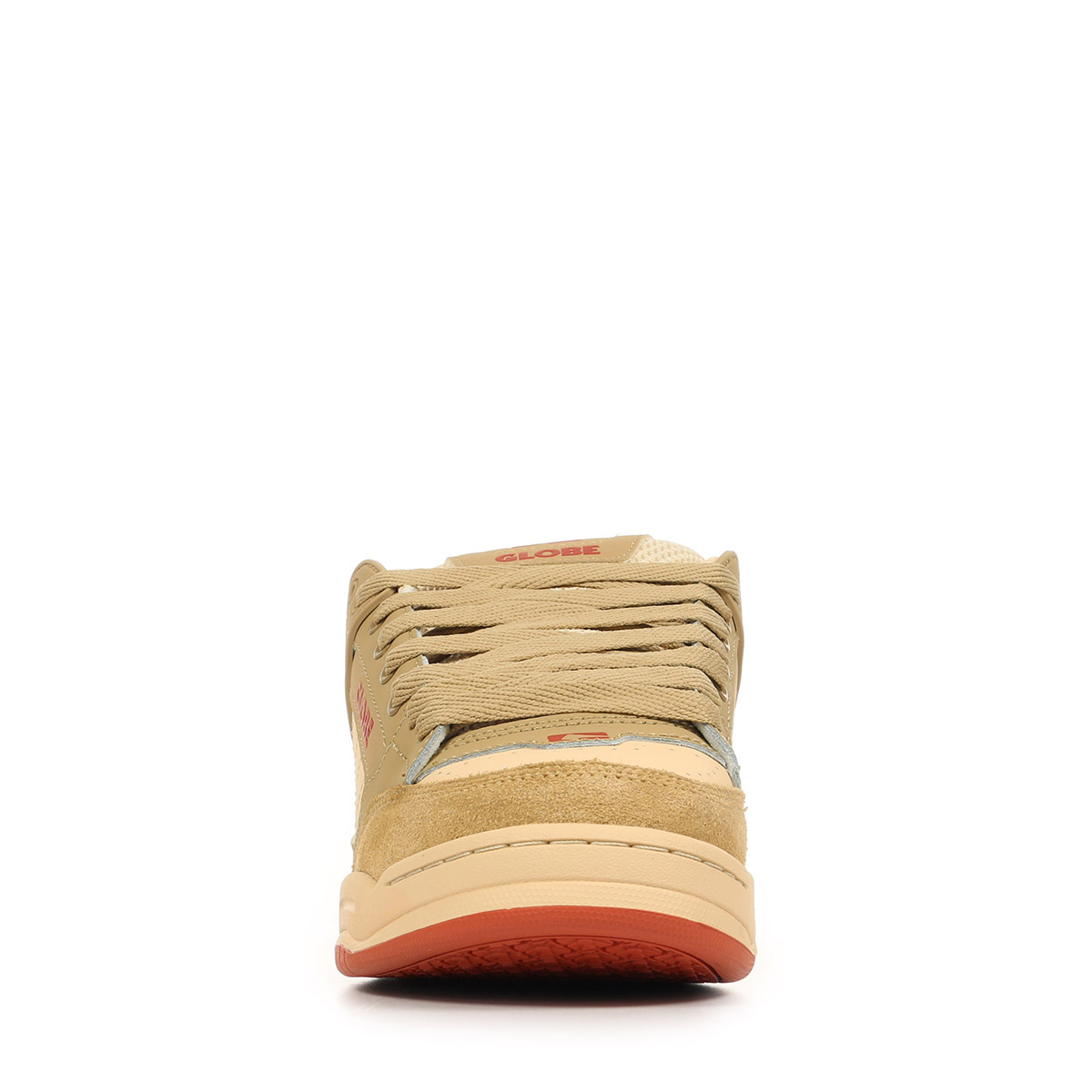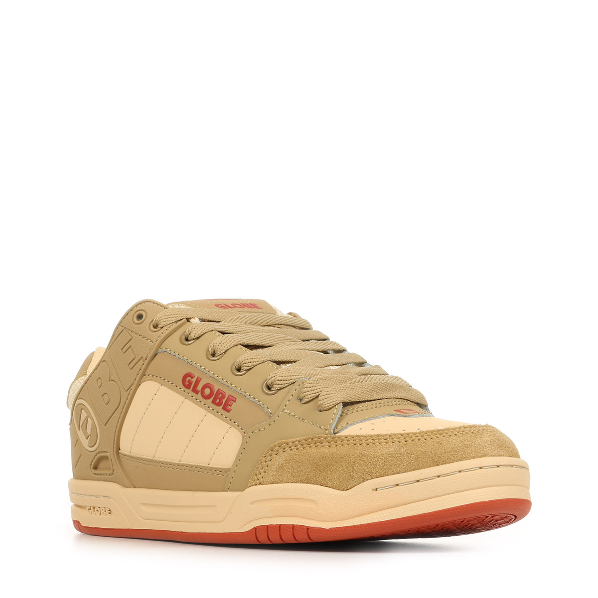 Alliant style et confort, la basket Globe Tilt s'impose comme un incontournable de la saison printemps-été 2026. Conçue pour les hommes adultes, elle se distingue par son design moderne et ses couleurs beige et rouge qui apportent une touche dynamique à toutes vos tenues. Sa construction associe le cuir et des matériaux synthétiques soigneusement sélectionnés, offrant à la fois durabilité et légèreté. La basket Globe Tilt dispose d’une fermeture à lacets traditionnelle pour un ajustement sûr et personnalisé. Pensée pour un usage quotidien, elle bénéficie d’une semelle extérieure en caoutchouc garantissant une bonne adhérence, tandis que sa semelle intérieure ergonomique et sa doublure en textile assurent un confort optimal tout au long de la journée. Sa coupe basse et sa largeur normale en font un modèle polyvalent, parfait pour accompagner toutes vos aventures printanières et estivales.