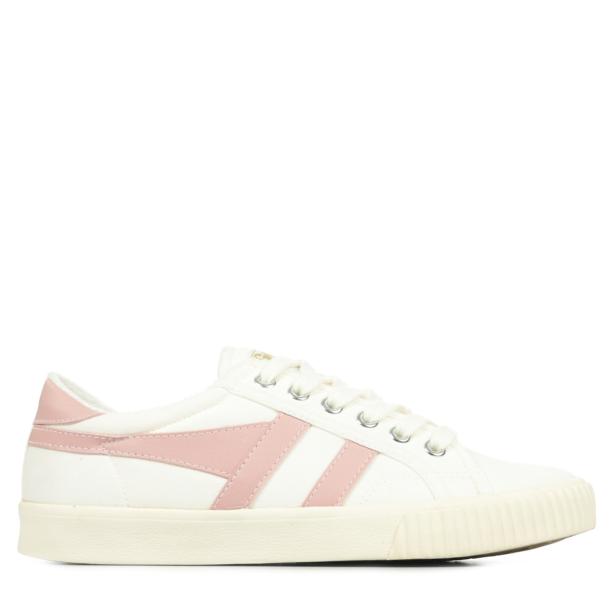 Gola présente la Tennis Mark Cox. Basée sur un modèle original Gola datant de 1975 et porté par le joueur de tennis Mark Cox, la Tennis s'inscrit dans la longue histoire de Gola avec les sports de raquette. Cette chaussure de tennis pour femme est dotée d'une tige blanc cassé et d'une bordure contrastante rose craie. Le logo Gola doré est visible sur la languette et le talon.