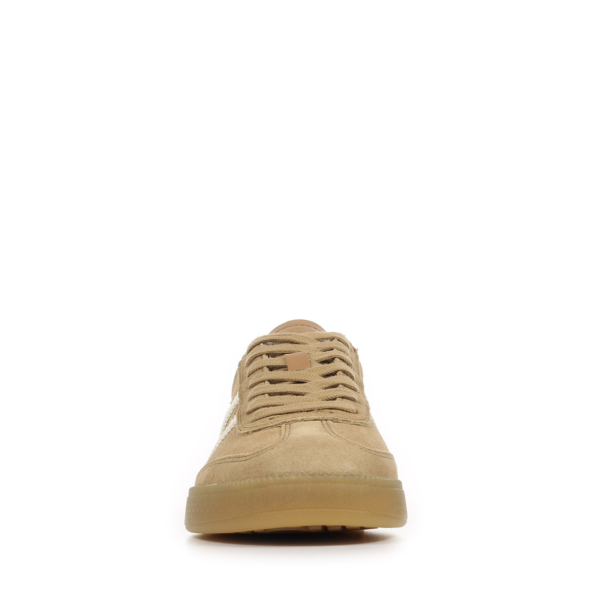Conçue en cuir de qualité, cette chaussure basse présente une silhouette épurée rehaussée par une palette de couleurs marron et blanc, agrémentée de détails Light Caramel, Off White, Gold et Gum pour une touche de raffinement.