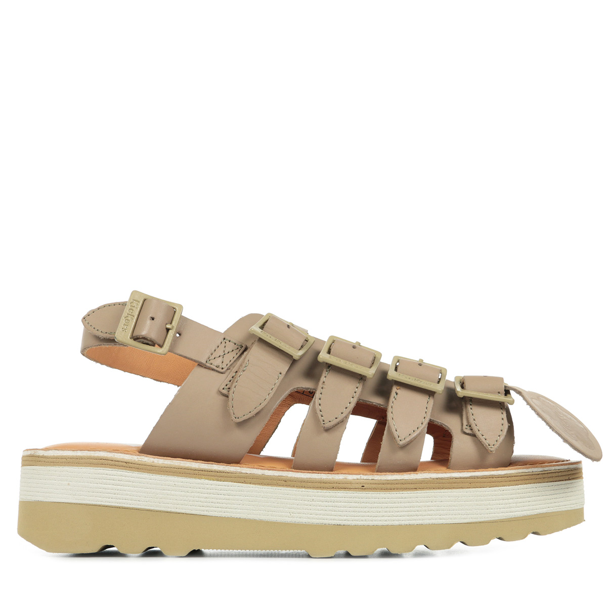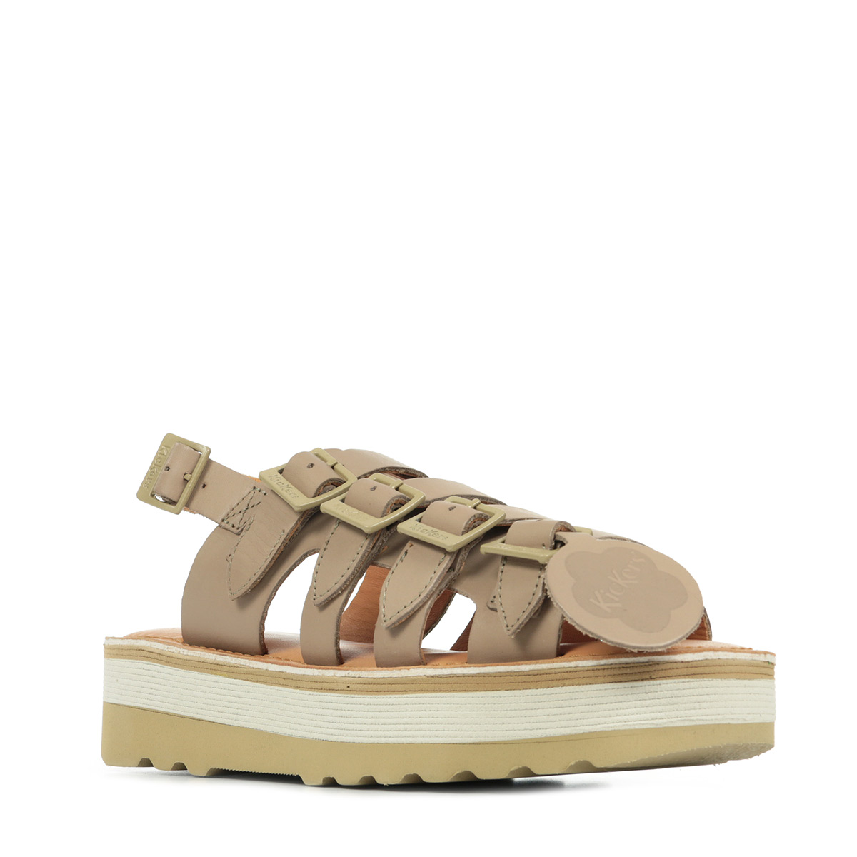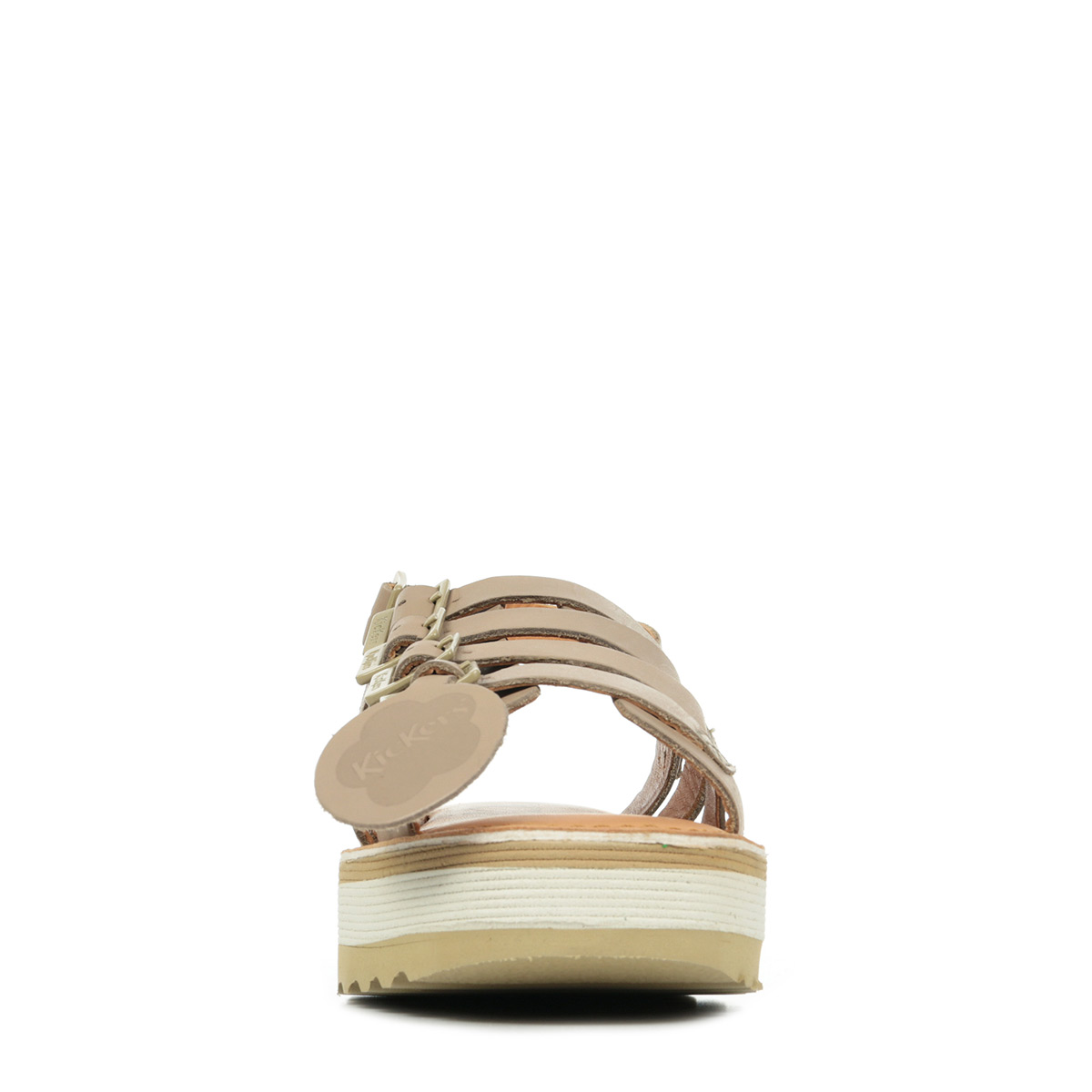 Le modèle Kick Hi Sunny est une paire de sandales pour femme composée d'une tige et d'une doublure en cuir de couleur beige clair. Ces sandales vous garantissent confort et robustesse grâce à leur semelle intérieure en 100% cuir et leur semelle extérieure en plastique. Le modèle Kick Hi Sunny s'adapte aux pieds de toutes les femmes avec sa fermeture à boucle.