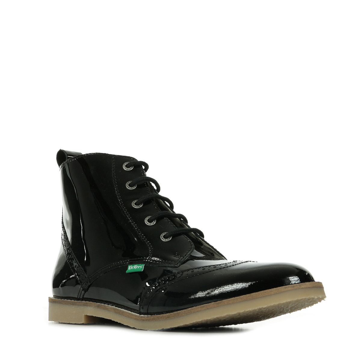Découvrez le modèle Tyrol noir vernis parmi notre sélection de bottillons fille. Cette paire de bottillons noirs à petits talons avec doublure en cuir, complètera à merveille votre collection de chaussures pour filles. Idéales à porter en ville. Ces bottillons en cuir ont une semelle en caoutchouc thermoplastique et une semelle intérieure 100% cuir avec une fermeture par lacet + zip.