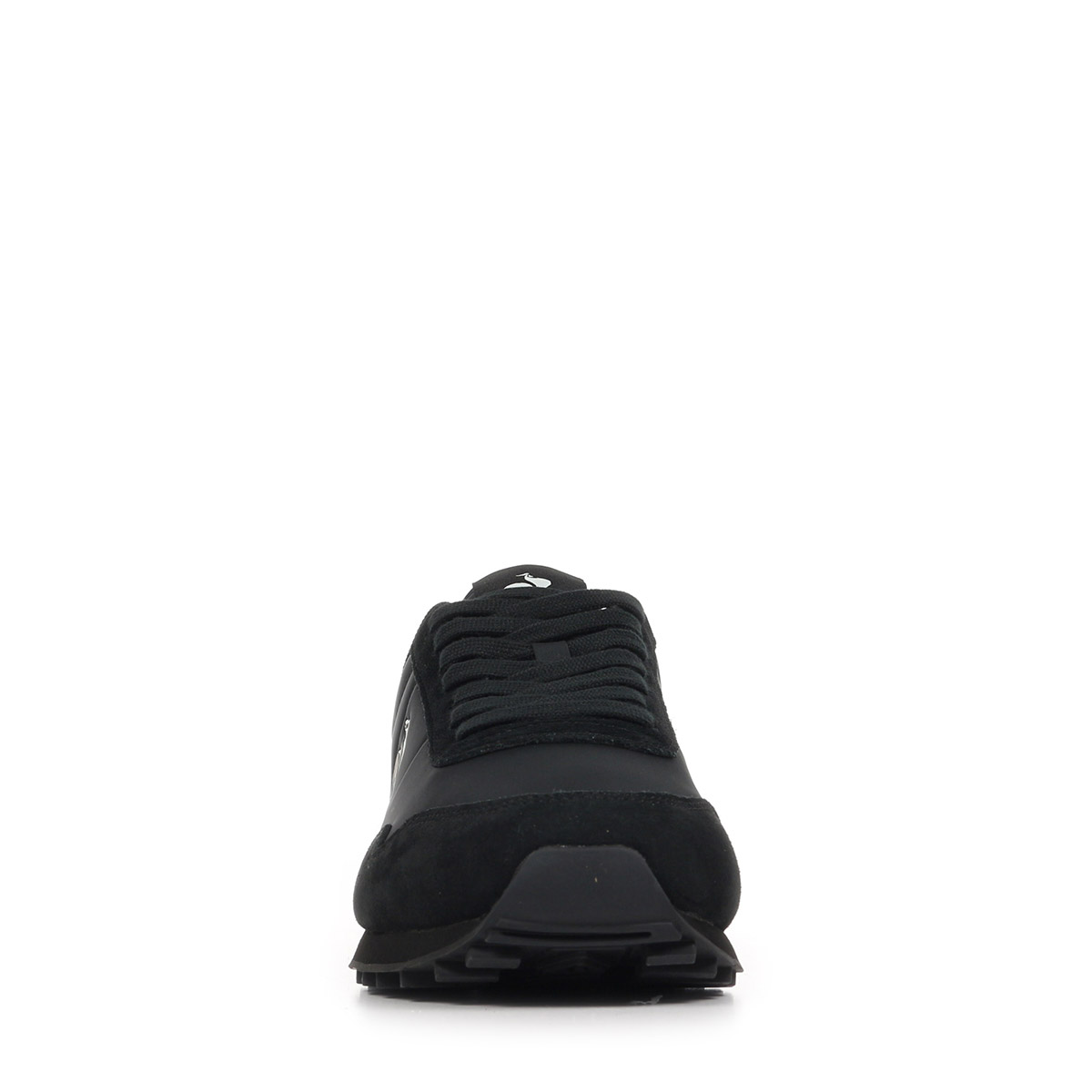 Conçue pour la saison printemps-été 2026, cette chaussure basse noire se distingue par son design soigné et ses matériaux de qualité, combinant cuir, synthétique et textile.