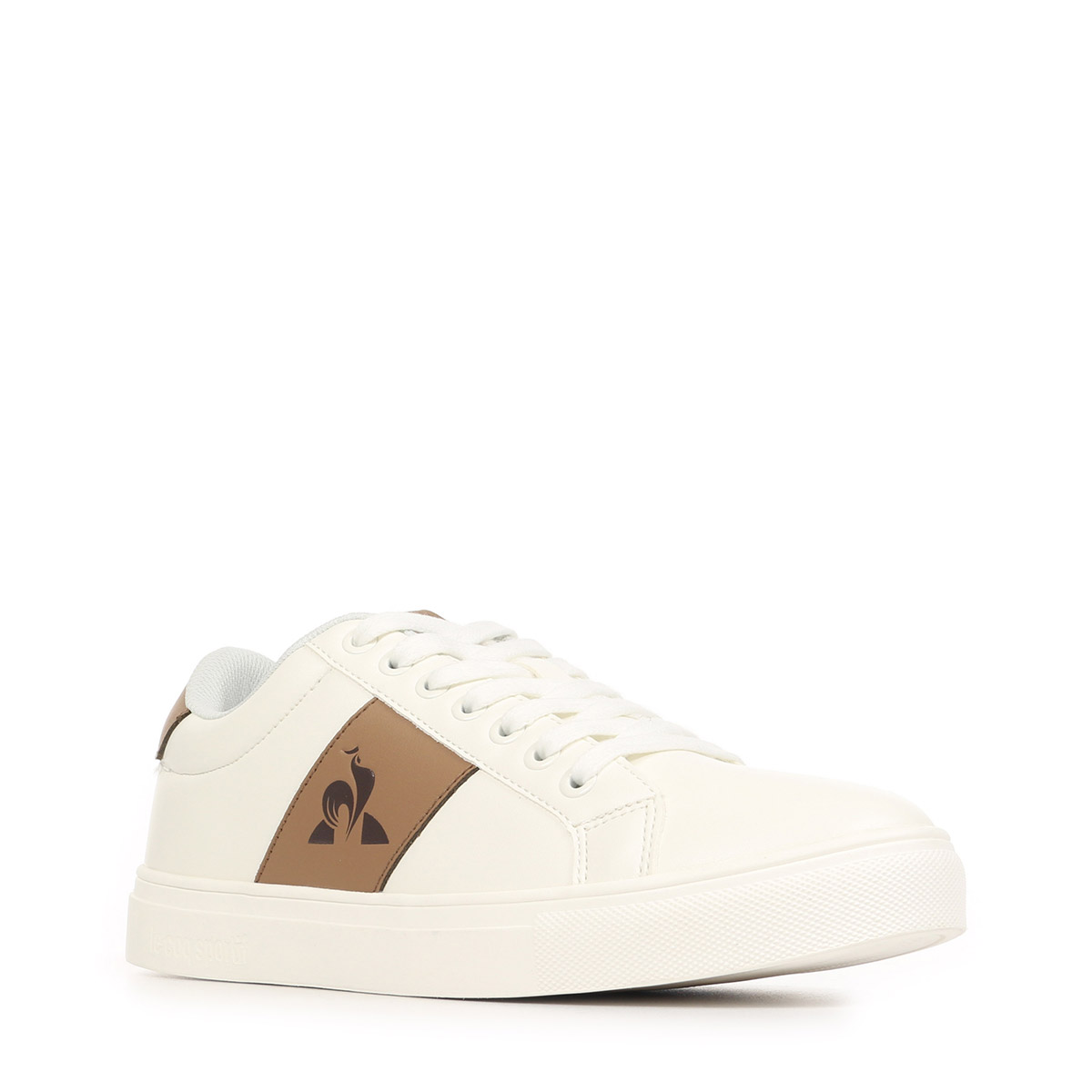 Sa silhouette basse et légère offre une sensation de liberté à chaque pas, tandis que son design mêlant blanc et marron apporte une touche traditionnelle et moderne à la fois.