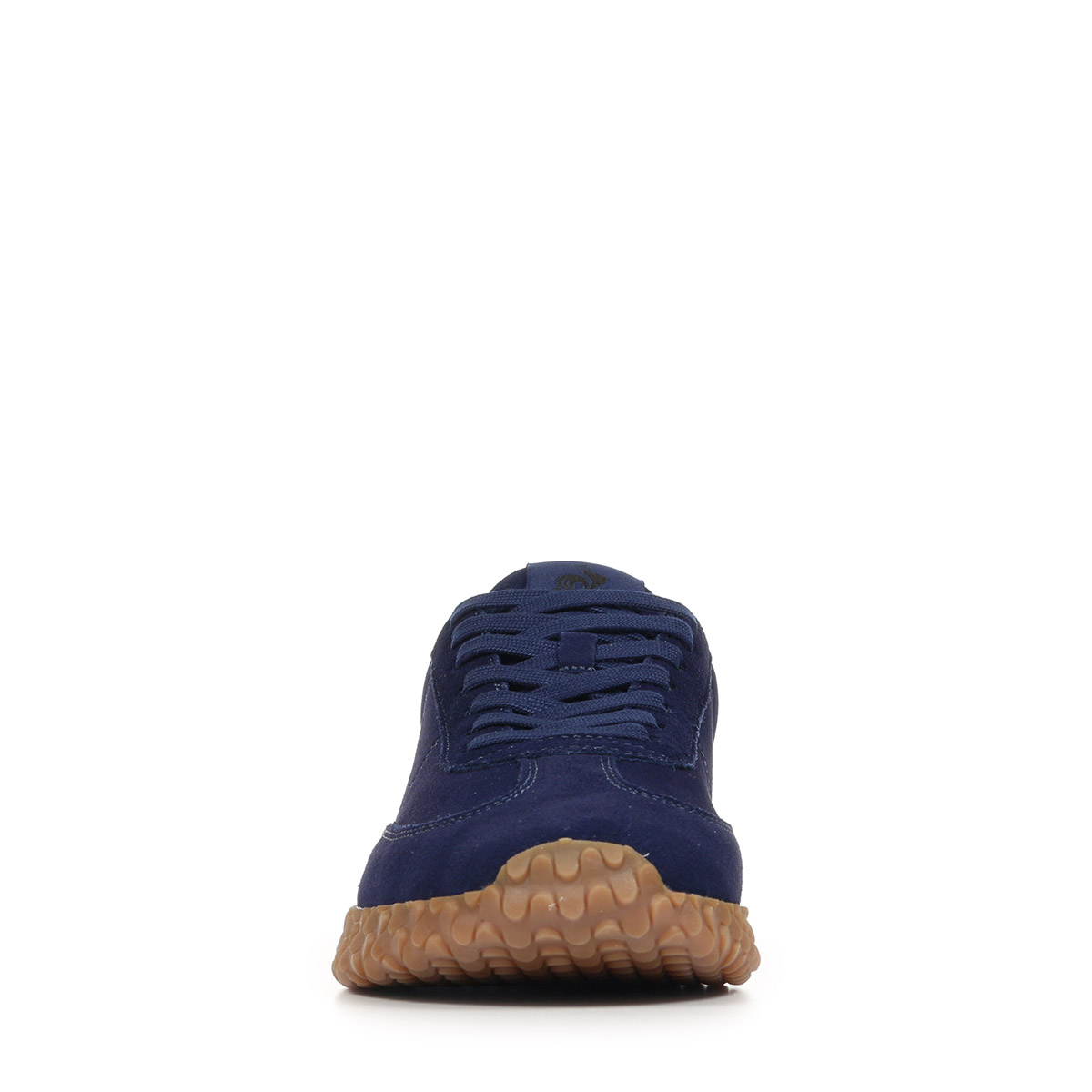 Conçue pour les hommes adultes, cette chaussure à la silhouette basse et aux lignes épurées se distingue par son cuir bleu marine raffiné, rehaussé de touches blanches, offrant un style intemporel adapté à toutes les saisons.