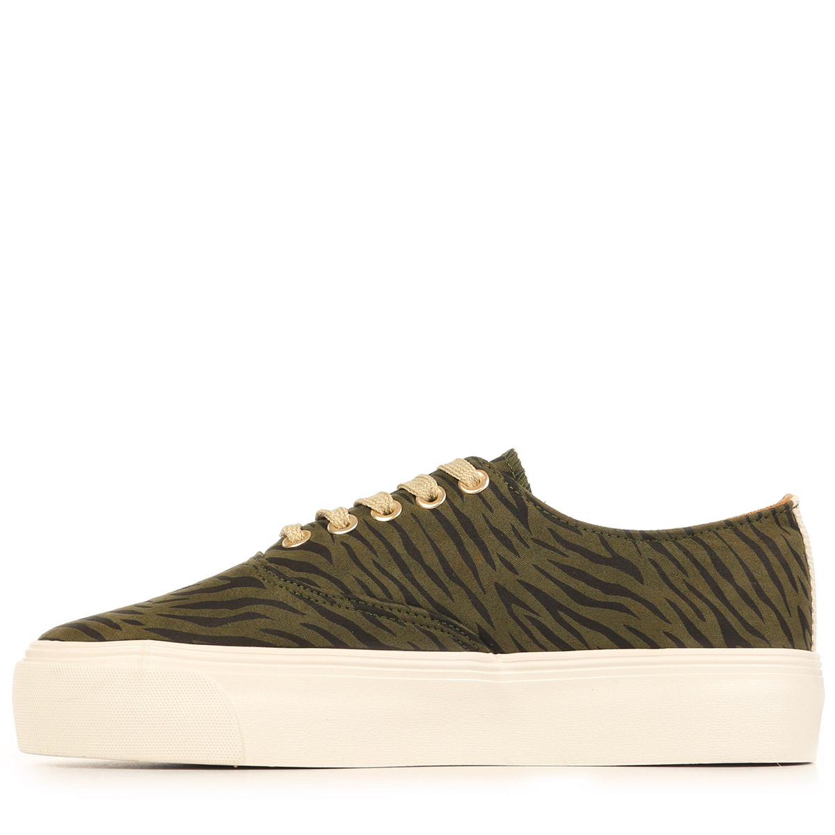 Plus produit : - Couleur kaki, avec une touche distinctive grâce à la marque kaki zèbre - Fermeture par lacets pour un ajustement parfait - Semelle extérieure en caoutchouc, durable et antidérapante - Semelle intérieure textile amovible pour un confort adapté - Chaussures basses plates avec une largeur normale, parfaites pour un usage quotidien en printemps-été