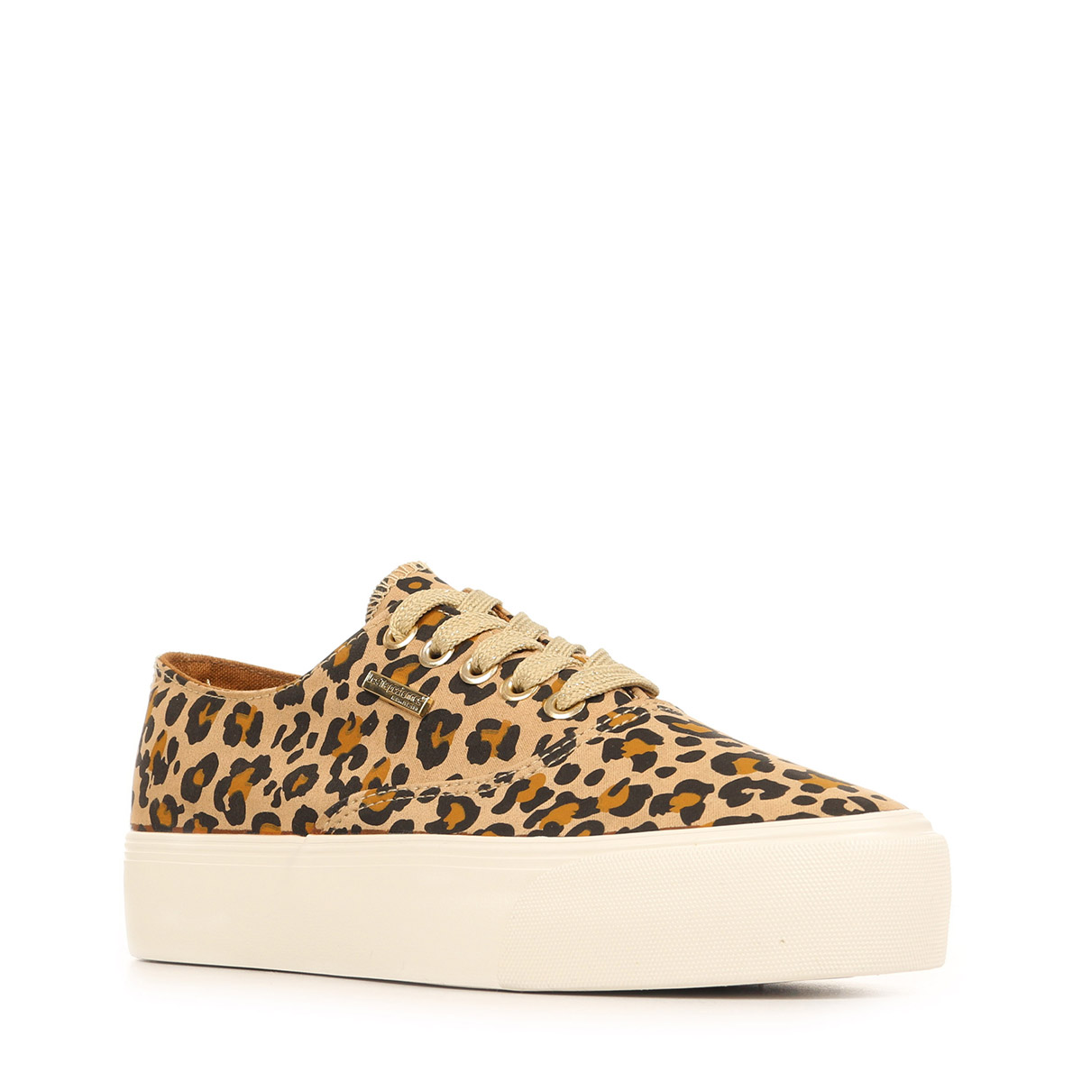 Plus produit : - Matière principale : Textile, pour plus de légèreté et de confort - Fermeture : Lacets pour un maintien personnalisé - Semelle extérieure : Caoutchouc pour une bonne adhérence - Semelle intérieure : Textile amovible pour un confort adaptable - Style : Baskets basses avec motif léopard beige tendance, adaptées pour le printemps-été 2026