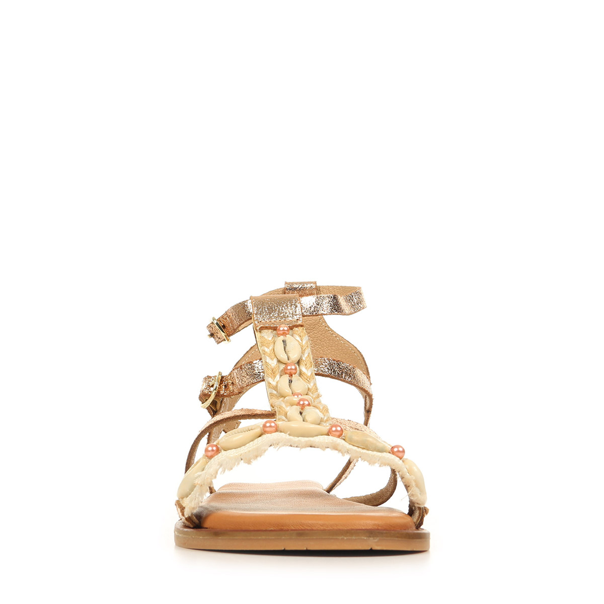 Plus produit : - Matière principale : cuir et doublure en cuir et textile - Fermeture : boucles réglables pour un maintien sûr - Semelle extérieure en caoutchouc antidérapante et semelle intérieure ergonomique en cuir - Talon plat et confort léger adapté à un port prolongé - Couleur doré multicolore, largeur de chaussure normale, collection printemps-été 2026