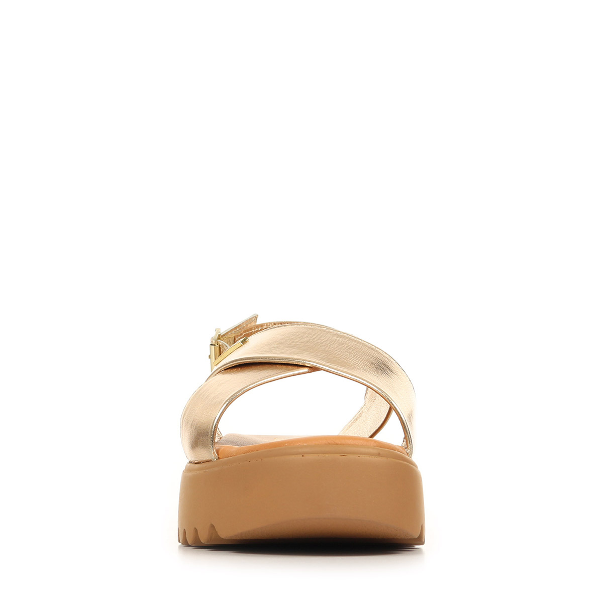 Plus produit : - Matière : cuir doré avec doublure et semelle intérieure en cuir - Fermeture à boucles pour un ajustement parfait - Semelle extérieure en caoutchouc pour une meilleure stabilité - Semelle intérieure ergonomique assurant un confort optimal - Design léger et plat, adapté à un port prolongé