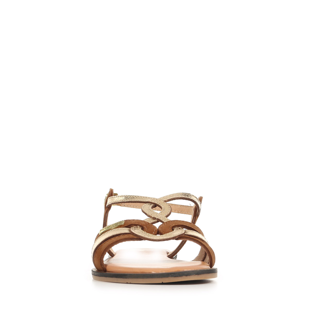 Les Tropéziennes by M Belarbi Habby sont des sandales élégantes et légères, idéales pour accompagner vos tenues printanières et estivales. Conçues pour les femmes adultes, ces sandales allient confort et style grâce à leur cuir de haute qualité et leurs finitions raffinées en marron et doré. La fermeture à boucles assure un maintien optimal tandis que la semelle plate en caoutchouc offre une parfaite adhérence. Leur semelle intérieure ergonomique et doublure en cuir garantissent un confort durable tout au long de la journée.