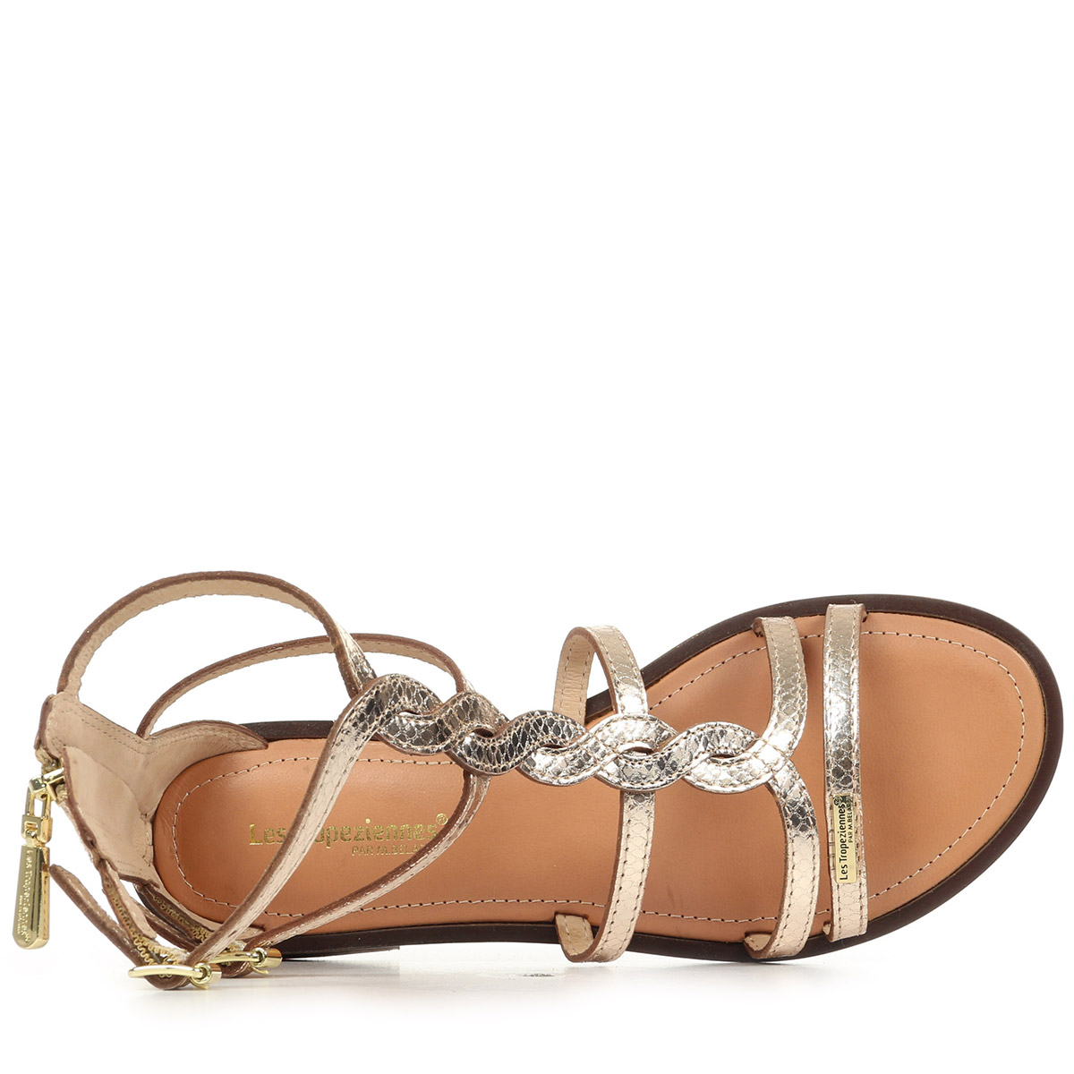 Découvrez les sandales Hastrid des Tropéziennes by M Belarbi, un indispensable pour sublimer vos tenues printanières et estivales. Élégantes et confortables, ces sandales plates dorées sont confectionnées en cuir de qualité et se distinguent par leur design raffiné aux nuances or serpent, qui apporte une touche sophistiquée et lumineuse à votre style. Leur fermeture à boucles assure un maintien optimal, tandis que la semelle intérieure ergonomique et la doublure en cuir vous garantissent un confort durable tout au long de la journée. Légères et adaptées à une largeur normale, ces sandales féminines de la collection 2026 sont parfaites pour accompagner vos moments d’élégance en toute simplicité.