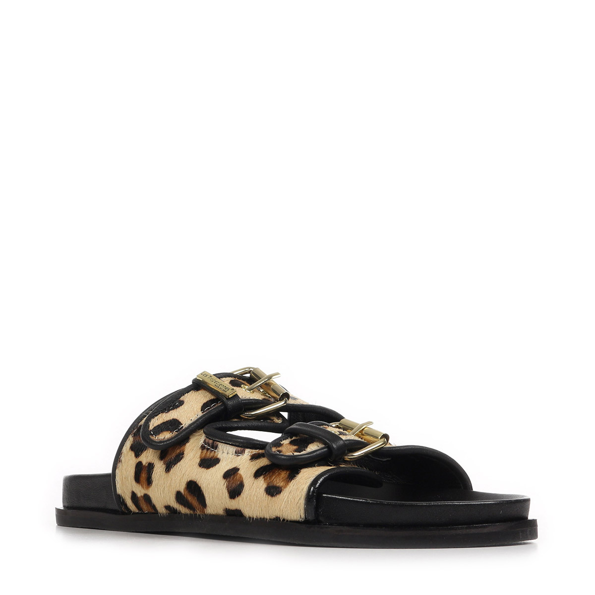 Plus produit : - Matière principale en cuir véritable et doublure en cuir pour un confort naturel - Semelle intérieure ergonomique en cuir, assurant un excellent maintien du pied - Semelle extérieure en caoutchouc légère et antidérapante - Fermeture à boucles pour un ajustement précis et sécurisé - Design léopard contemporain, idéal pour la saison printemps-été 2026
