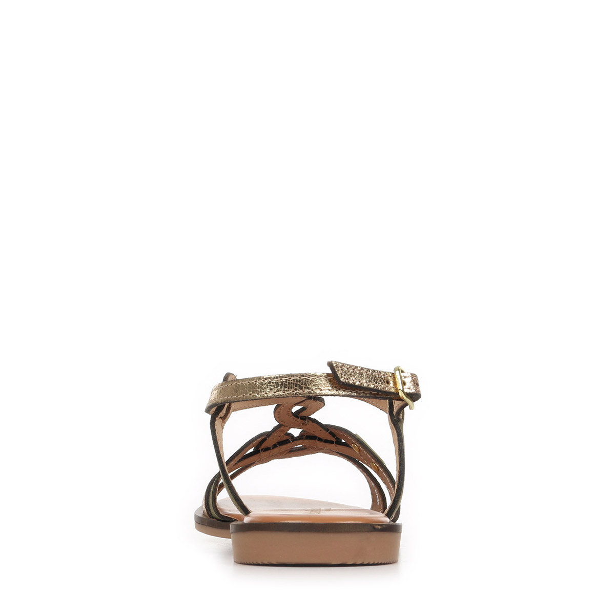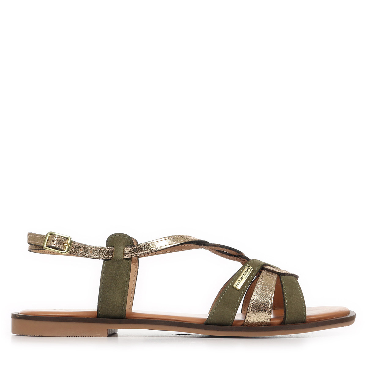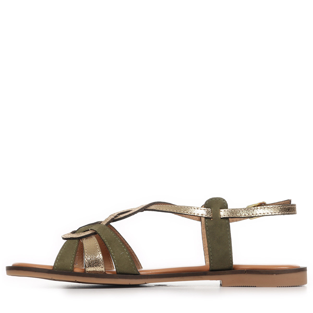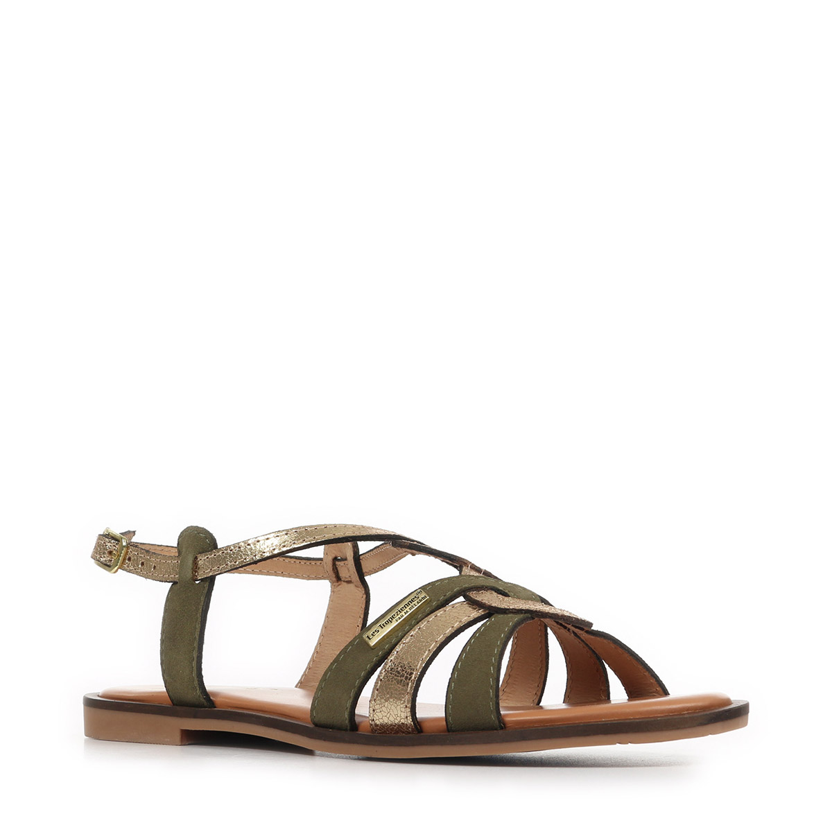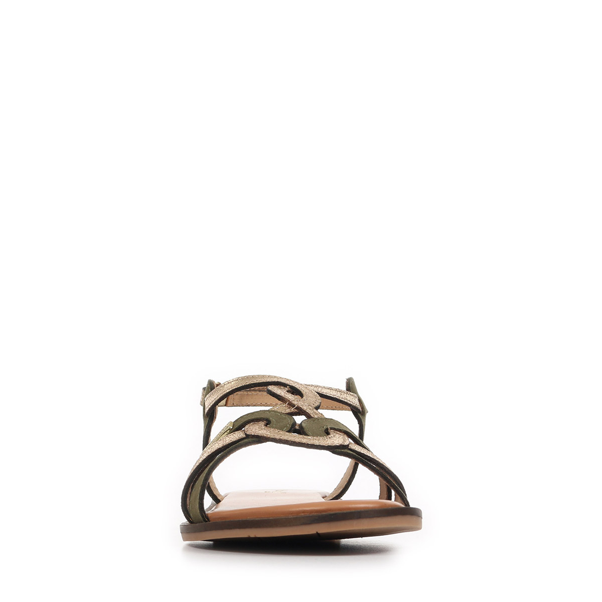 Plus produit : - Matière : cuir véritable kaki et doré, finition soignée - Fermeture : à boucles pour un ajustement personnalisé - Semelle extérieure en caoutchouc pour une meilleure adhérence - Semelle intérieure ergonomique et doublure en cuir pour un confort durable - Talon plat et conception légère pour une aisance optimale