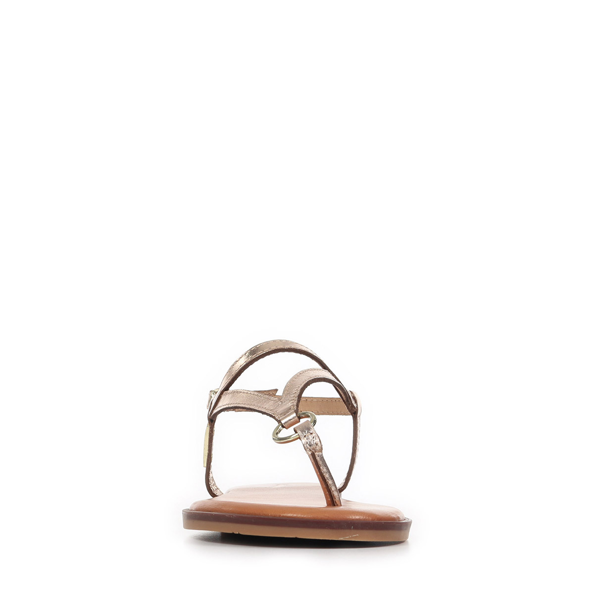 Découvrez les sandales Hatome des Tropéziennes by M.Belarbi, une alliance parfaite entre élégance et confort pour sublimer vos tenues printanières et estivales. Ces sandales dorées en cuir véritable apportent une touche de sophistication à votre style tout en assurant un maintien optimal grâce à leur fermeture à boucles. Leur design léger et plat est idéal pour accompagner vos journées actives avec aisance, tandis que la semelle ergonomique garantit un confort durable à chaque pas.