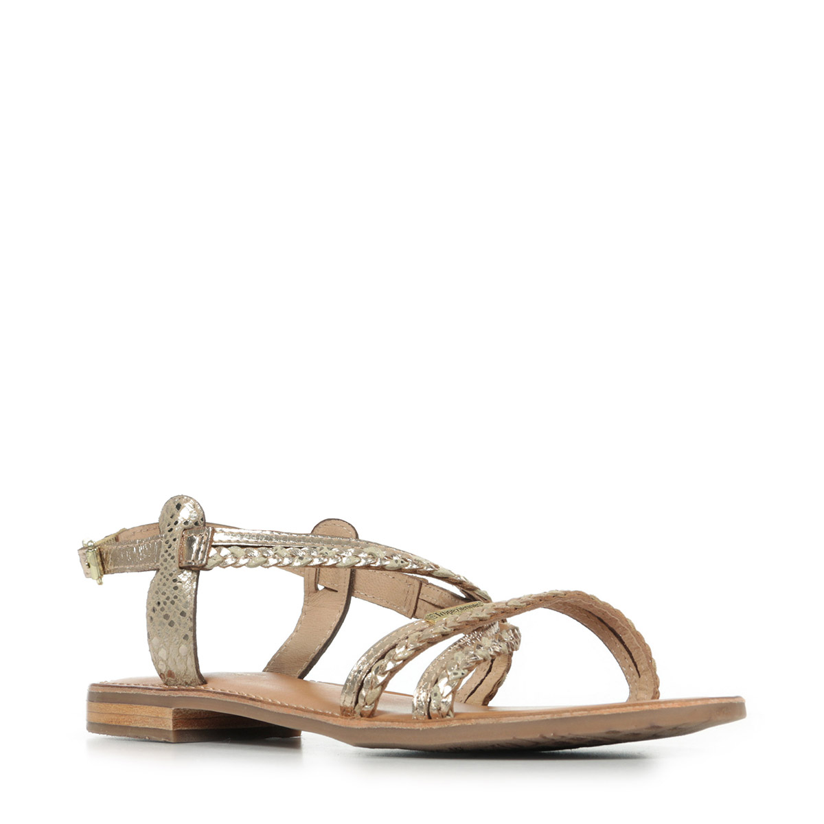Craquez pour la sandale plate pour femme Homongo. C'est une incontournable de l'été avec ses brides en cuir tressées bicolores qui se croisent sur le dessus du pied. Une jolie boucle dorée permet de fermer la sandale sur le côté. La semelle intérieure est 100% cuir, offrant un confort et une aisance sans limite. La semelle extérieure est fabriquée à partir d'élastomère recyclé, offrant une adhérence parfaite tout au long de la journée.