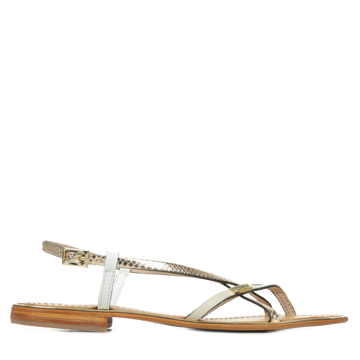 Mention spéciale, pour la sandale entre-doigts MONACO, avec sa combinaison de cuirs mats et métalliques.