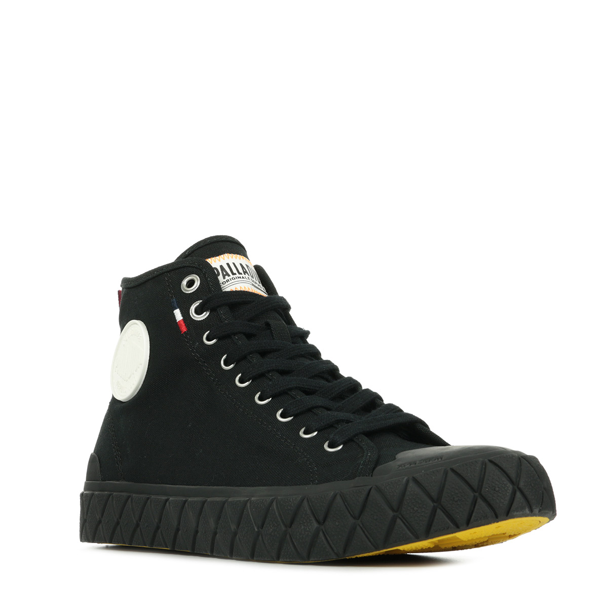 Des détails Palladium sophistiqués et plusieurs drapeaux français – broderie tricolore sur la pièce d’œillet et boucle au talon – viennent rehausser le tout pour un look résolument intrépide.