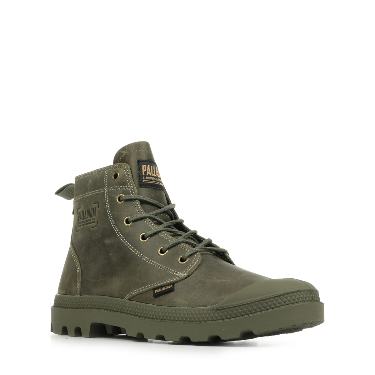 Palladium est une société créée en 1920 spécialisée à l'origine dans la fabrication des pneus pour l'aviation. Elle a développé un procédé industriel unique en la vulcanisation du caoutchouc et de la toile. Très rapidement, elle devient alors le fournisseur incontournable de la majorité des flottes aériennes européennes. Mais l'industrie de l'aviation est en ruines suite à la Seconde Guerre Mondiale. En 1947, l'entreprise décide alors d'ouvrir une usine dans l'Isère afin de produire des chaussures, en utilisant le même principe de vulcanisation du caoutchouc et de la toile. Palladium propose ainsi des chaussures solides, pratiques et confortables. Leur qualité est telle que la Légion Etrangère Française choisit leur modèle original pour ses troupes. Aujourd'hui, les Palladium satisfont les aventuriers du monde entier avec leurs chaussures résistantes, au design authentique et aux lignes épurées.