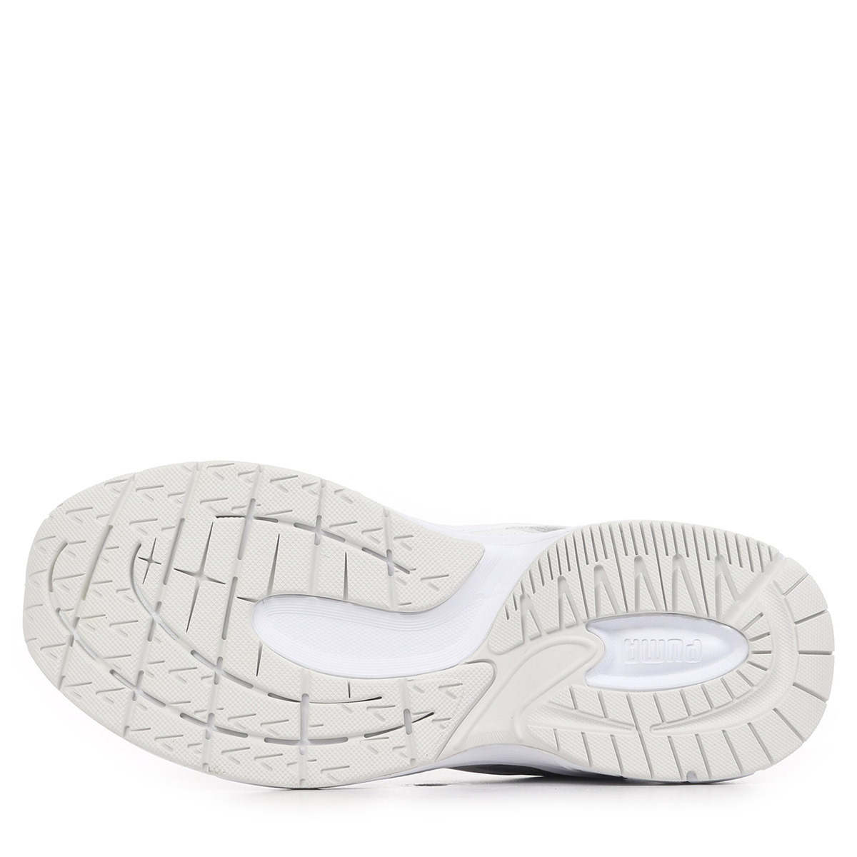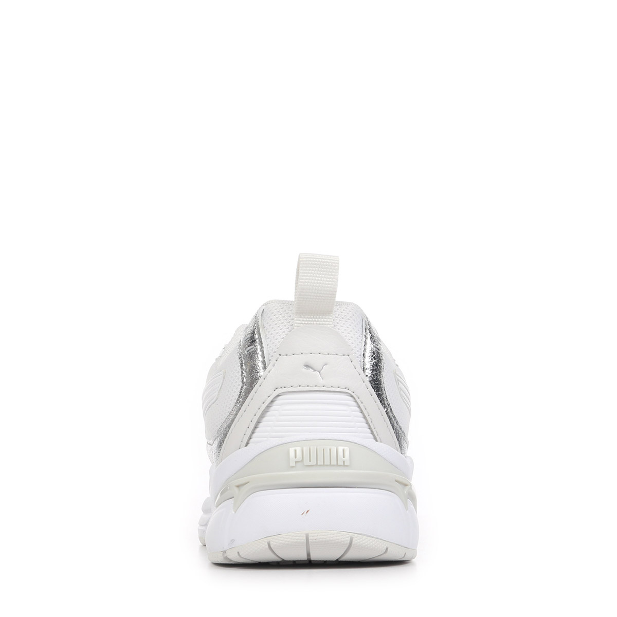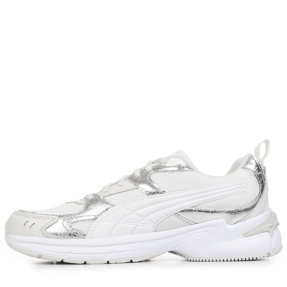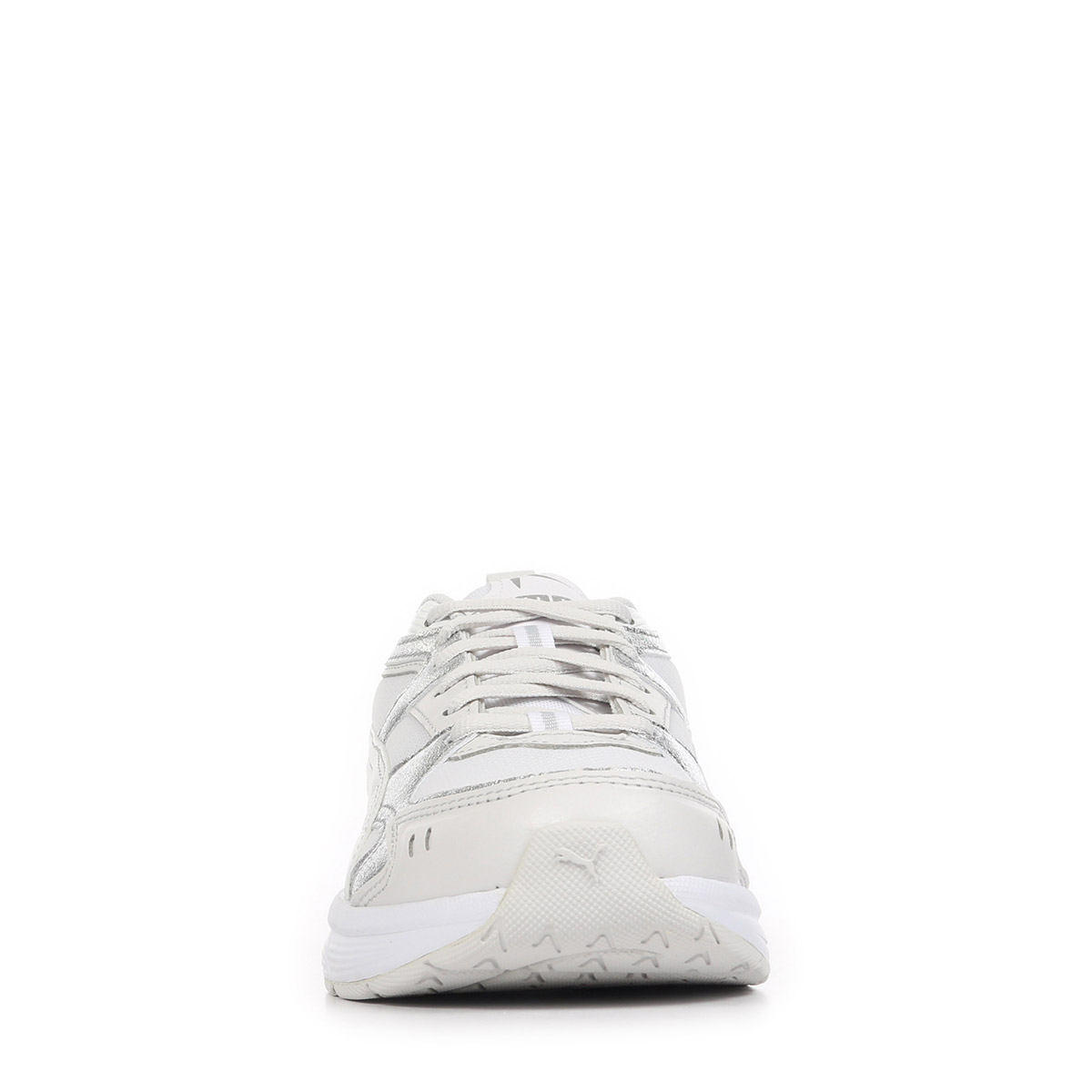 Alliant confort et style, cette chaussure basse arbore un design moderne en textile blanc et argent, agrémenté des touches discrètes de White Feather Gray Silver sur la marque.