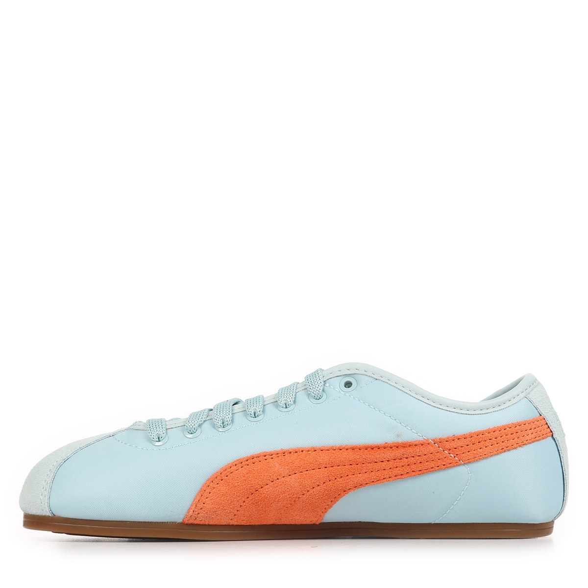 Conçue pour les adultes, cette chaussure basse se distingue par ses couleurs fraîches bleu clair et orange, rehaussées par la teinte "Fresh Water Melon Gum" sur la marque, apportant une touche dynamique à vos tenues.