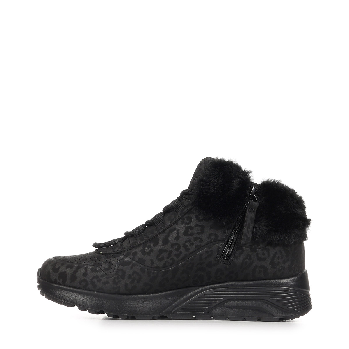Conçues pour la saison automne-hiver 2025, ces baskets pour enfants se distinguent par leur design tendance alliant des nuances de noir et un motif léopard audacieux.