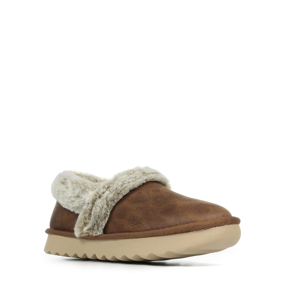 Plus produit : - Tige en cuir synthétique avec garniture et doublure en fourrure synthétique - Pantoufles chaudes de style sabot - Semelle extérieure souple ondulée - Talon de 2,5 cm - Détail du logo Skechers Voir aussi : Guide de tailles chaussures Skechers