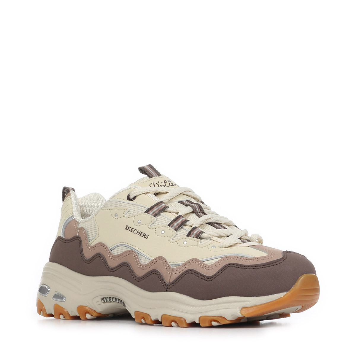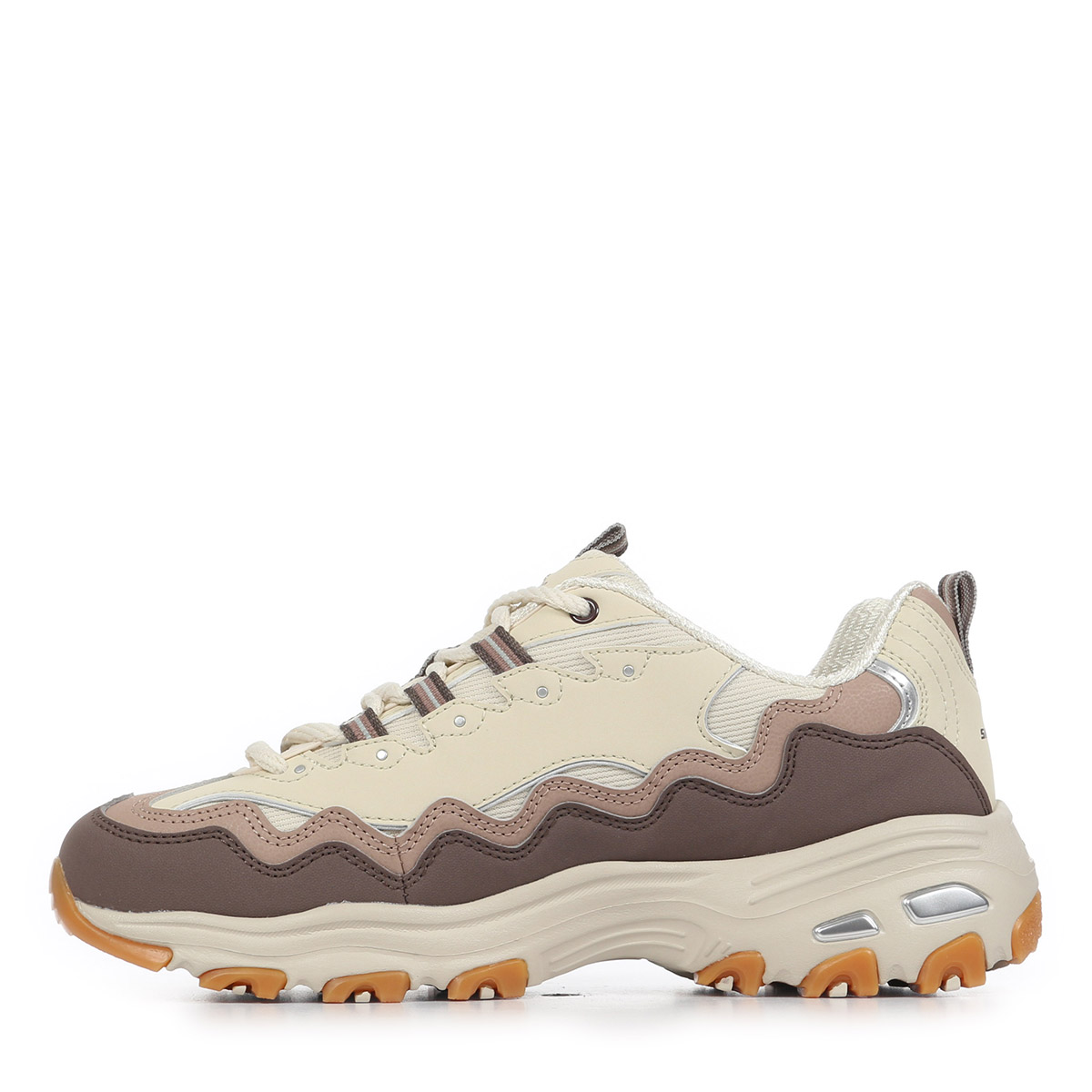 Découvrez les Skechers D'Lites Vintage Wave, des baskets alliant style rétro et confort moderne, parfaites pour sublimer vos tenues printanières et estivales. Conçues spécialement pour les femmes, ces chaussures basses se distinguent par leur palette élégante de beige et marron naturel, apportant une touche de douceur à votre look quotidien.