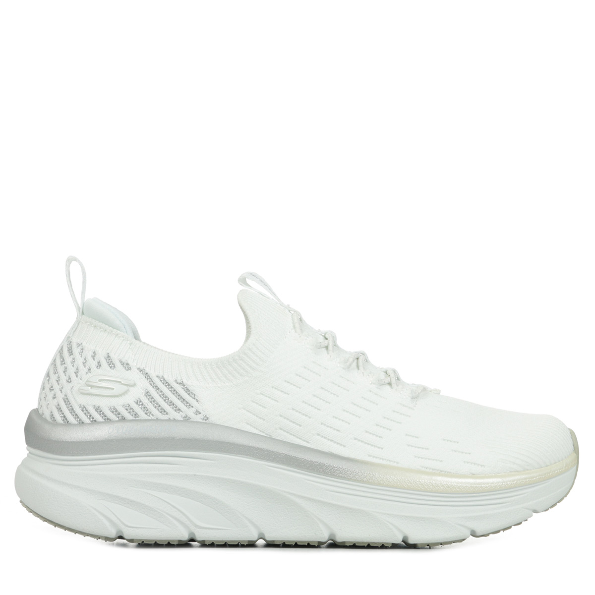Style glamour, confort et amorti s’allient dans la Skechers Relaxed Fit®: D’Lux Walker™ - Let it Glow. Ces chaussures à enfiler sont dotées d’une tige en maille technique métallisée Stretch Fit® avec des lacets élastiques, d’une semelle intérieure Skechers Air-Cooled Memory Foam® et d’une semelle intermédiaire à plateforme coussinée.