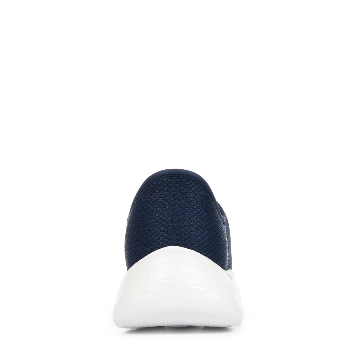 Conçues dans des matériaux textile et synthétique, ces chaussures basses bleu marine et blanc offrent une silhouette moderne et épurée.