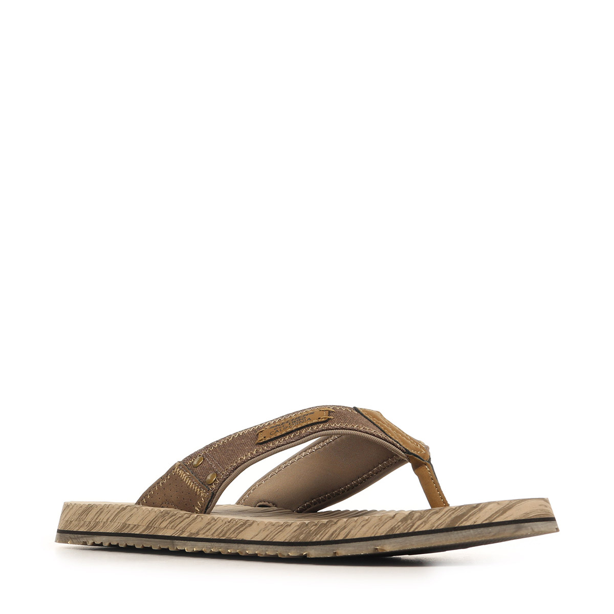 Pensées pour les hommes modernes, ces tongs de la collection 2026 se distinguent par leur coloris marron élégant et leur fabrication en synthétique et textile, offrant à la fois légèreté et durabilité.