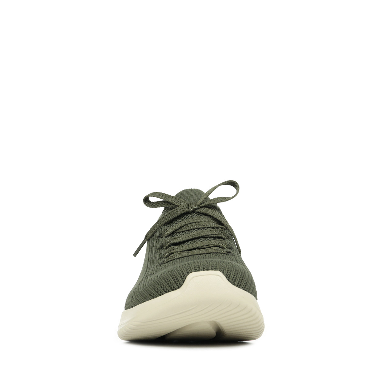 Ce modèle est doté d’une tige en maille technique Stretch Fit avec des lacets décoratifs et d’une semelle intérieure en mousse à mémoire de forme Skechers Air-Cooled Memory Foam aérée et coussinée Skechers.