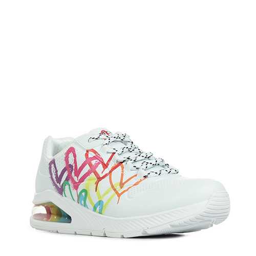 Le muraliste de renommée internationale James Goldcrown apporte ses motifs iconiques #Lovewall heart à Skechers dans cette collaboration inspirante. Montrez votre côté créatif avec Skechers x JGoldcrown : Skechers Street™ Uno Flaoting Love. Cette chaussure de sport tendance à lacets présente un imprimé avec le motif du cœur emblématique de l'artiste, une tige en synthétique et une garniture perforée avec une assise plantaire SKECHERS Air Cooled Memory Foam® et une plateforme compensée avec une semelle intermédiaire Skech-Air® à bulle d'air apparente.