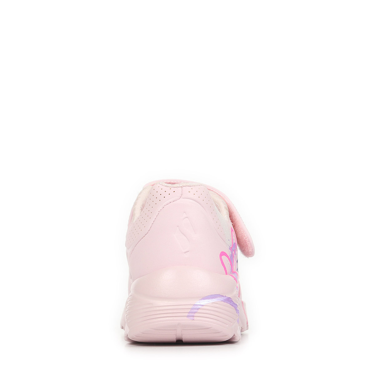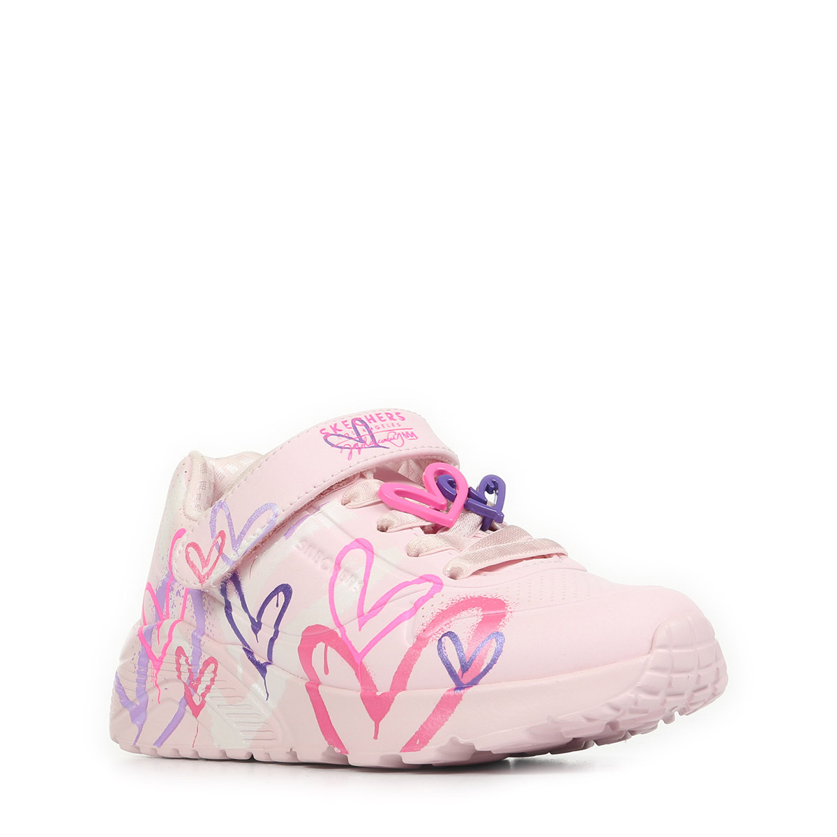 Découvrez les Skechers Uno Lite Heart Status, des baskets spécialement conçues pour les enfants, alliant style et confort pour la saison printemps-été 2026. Avec leur design féminin décliné en rose et multicolore, ces chaussures basses légères sont idéales pour accompagner les pas actifs des plus jeunes tout en apportant une touche de fraîcheur à leurs tenues.