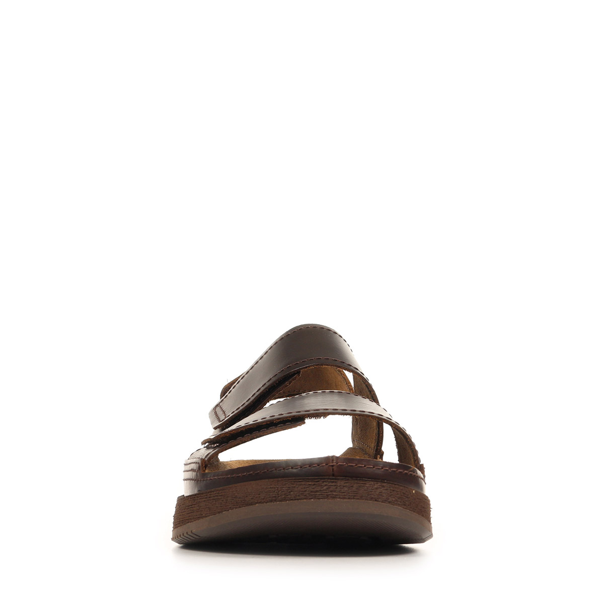 Fabriquées en cuir marron de haute qualité, ces sandales allient robustesse et légèreté, idéales pour accompagner toutes vos promenades estivales.
