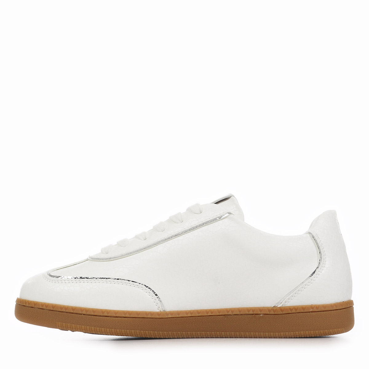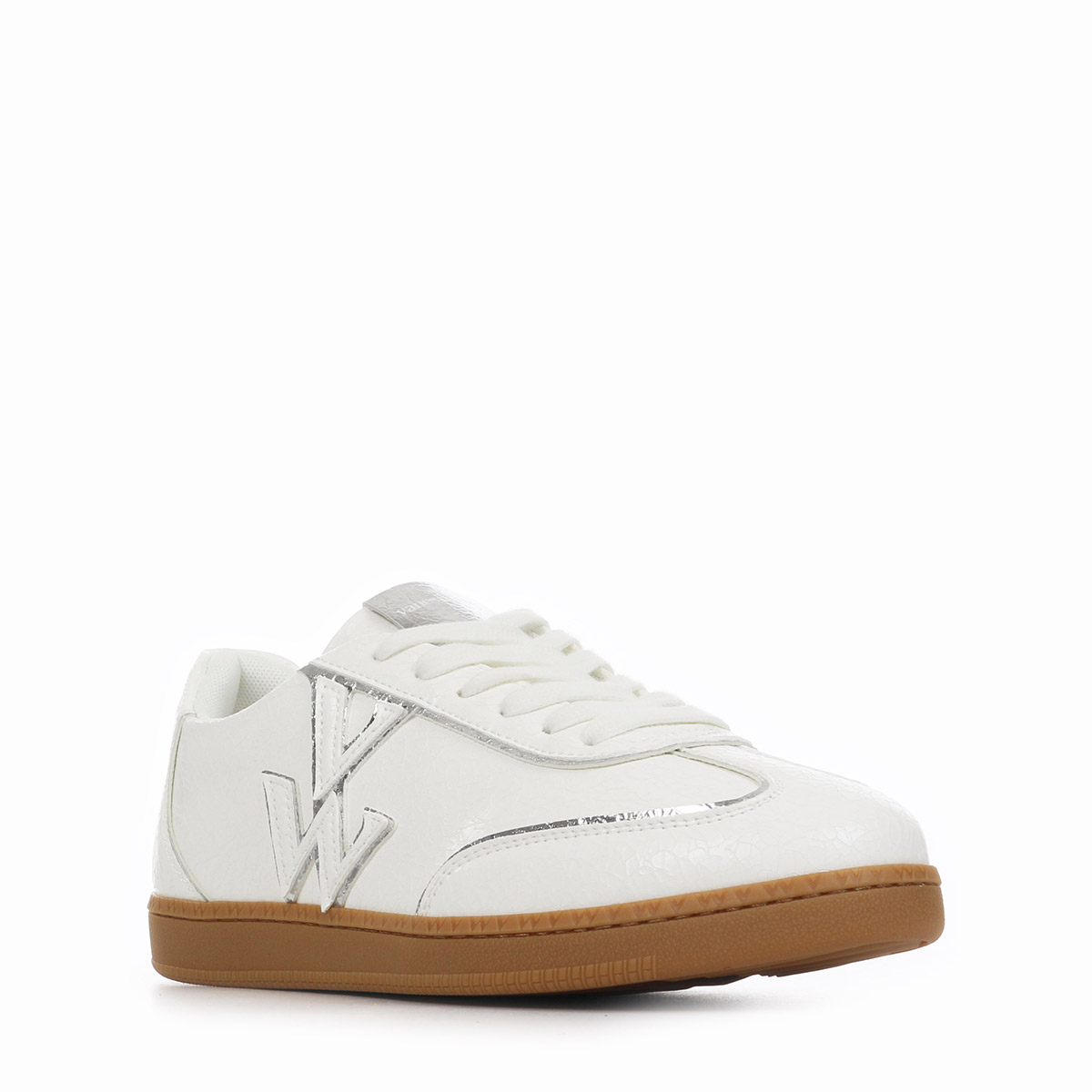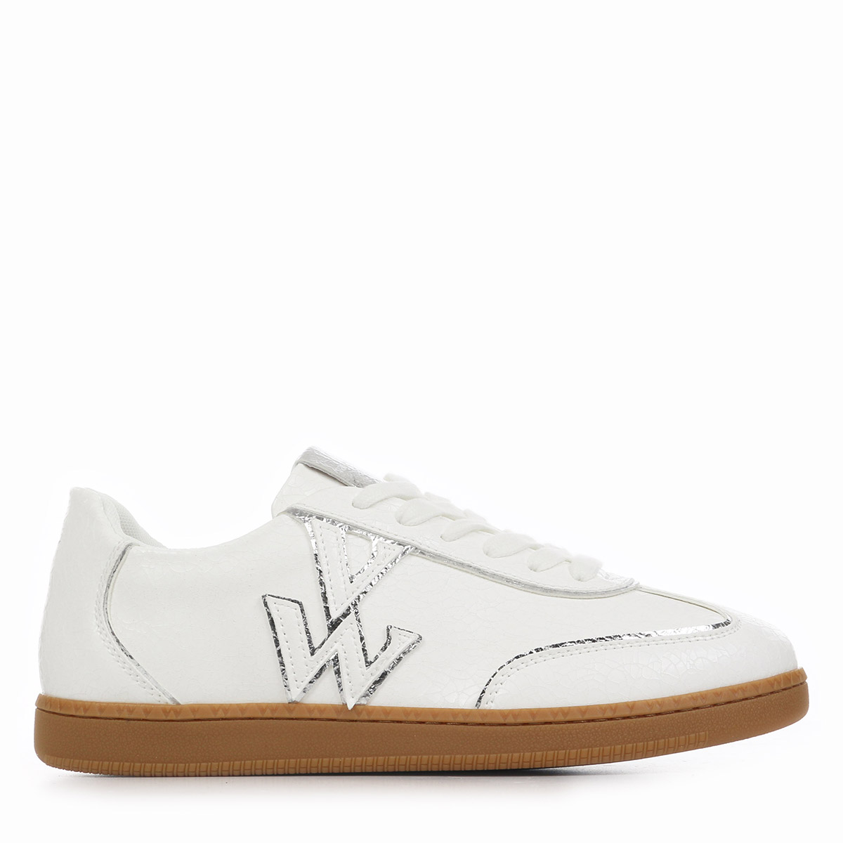 Découvrez la basket Vanessa WU Aura Initials, l'alliance parfaite entre élégance et confort pour un style frais et moderne. Conçue pour les femmes actives et tendance, cette chaussure basse se distingue par sa couleur blanche rehaussée de touches argentées, apportant une note brillante et sophistiquée à vos tenues printanières et estivales. Son design léger et sa semelle en caoutchouc assurent un maintien optimal tout au long de la journée, tandis que la doublure textile et la semelle intérieure amovible garantissent un confort exceptionnel.
