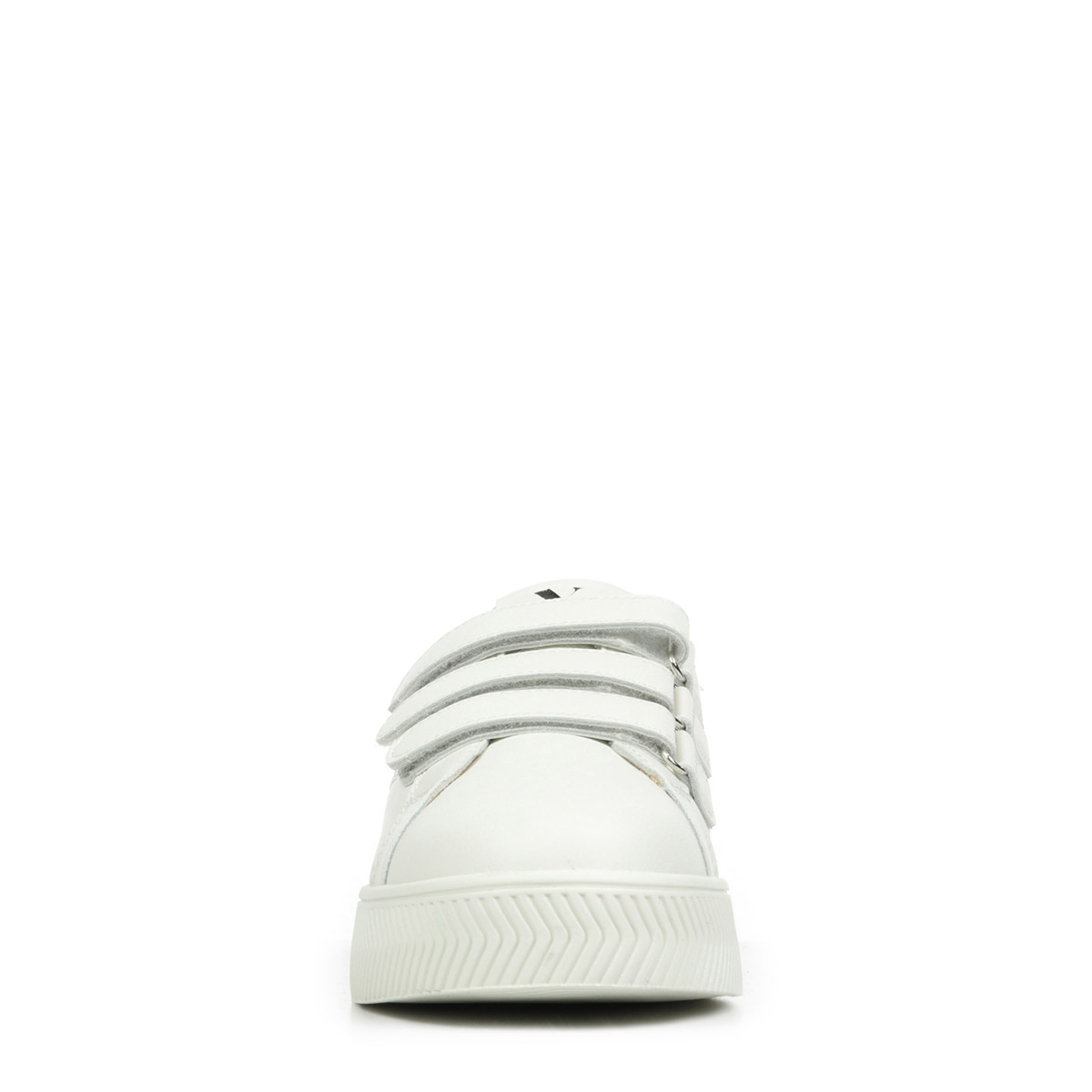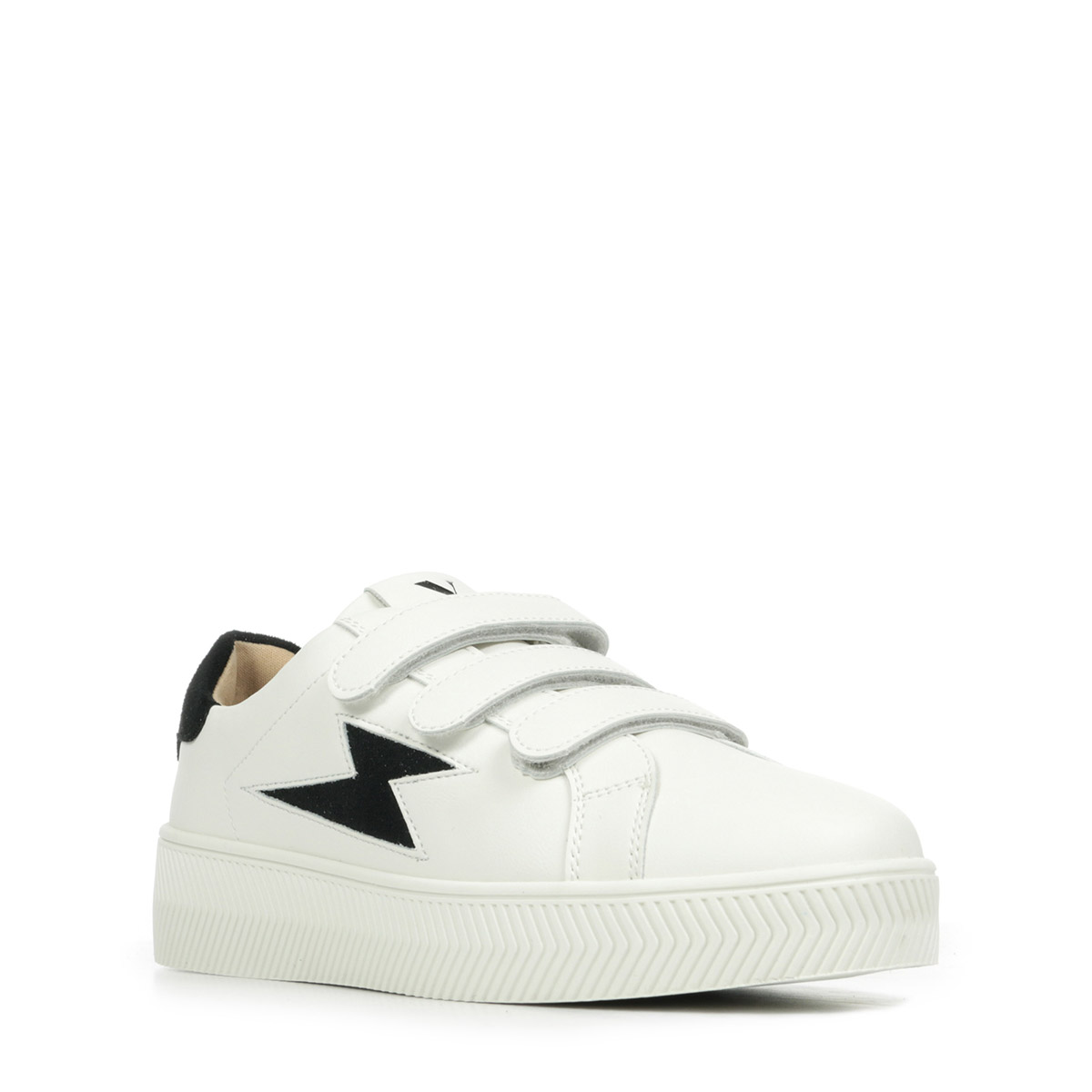 Plus produit : - Découpe en forme d'éclair et patch arrière en suédine orange corail - Fermeture à scratchs blancs - Bout rond - Semelle épaisse blanche à motifs chevrons