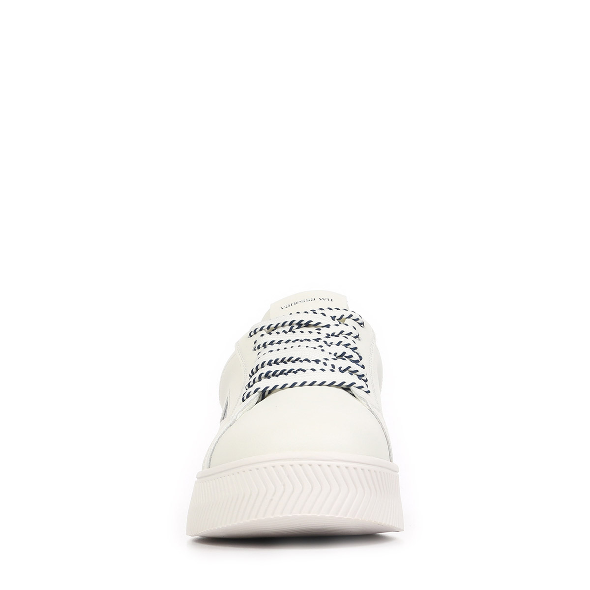 Découvrez les baskets Vanessa WU Jane Emblem, un modèle féminin et tendance parfaitement adapté à la saison Printemps-Été 2026. Avec leur design bicolore bleu marine et blanc, ces chaussures basses apportent une touche moderne à toutes vos tenues décontractées. Conçues en matière synthétique légère, elles offrent un confort optimal tout au long de la journée grâce à leur semelle intérieure textile amovible et leur doublure douce. Leur fermeture à lacets garantit un maintien sûr tandis que la semelle extérieure en caoutchouc assure une bonne adhérence pour vos déplacements quotidiens.