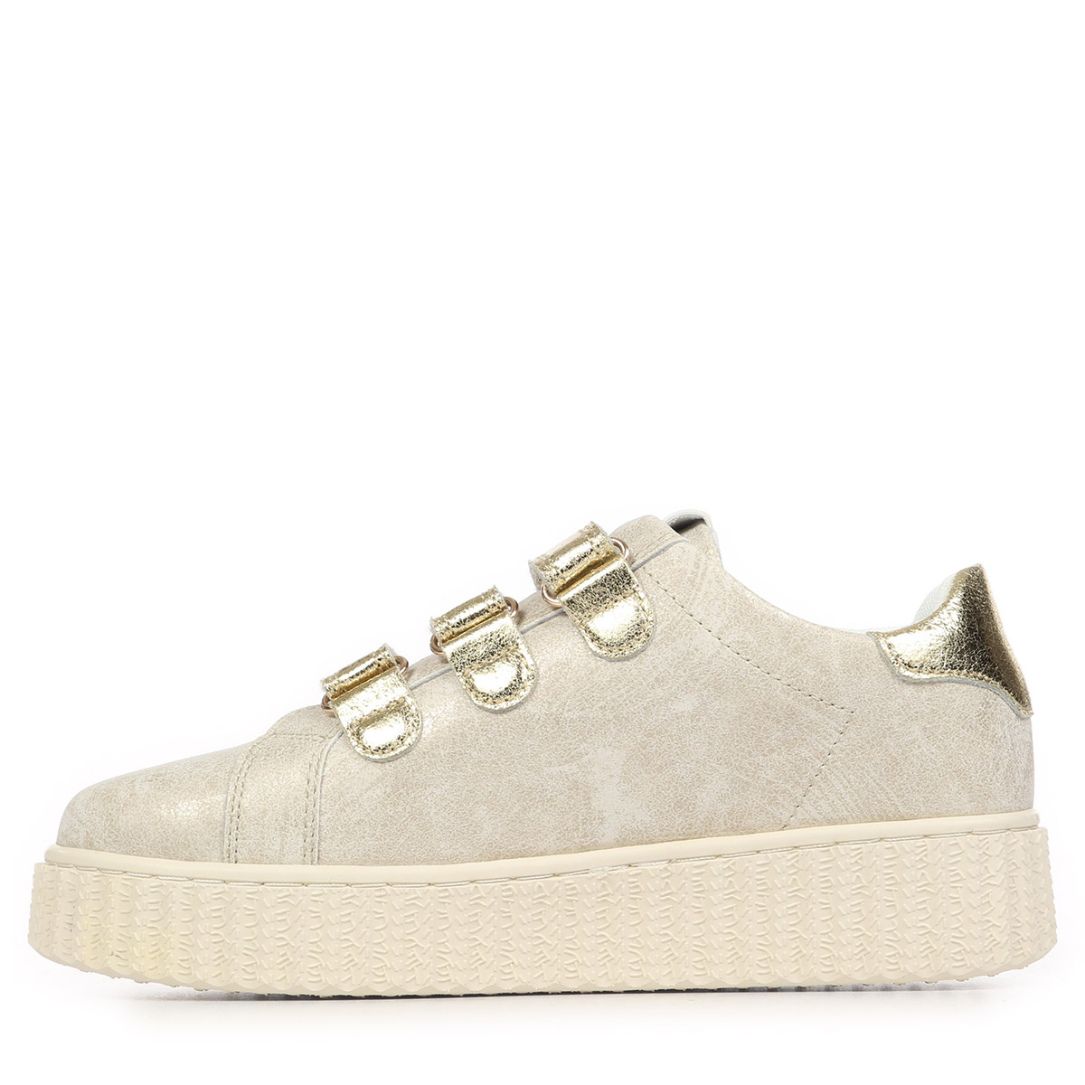 Plus produit : - Couleur : Doré et gris, avec une touche gold au niveau de la marque - Matière : Synthétique pour une finition soignée, doublure textile pour plus de douceur - Semelle extérieure en caoutchouc offrant une bonne adhérence et durabilité - Fermeture par scratchs pour un maintien facile et rapide - Semelle intérieure amovible et chaussures légères, parfaites pour le confort et la flexibilité