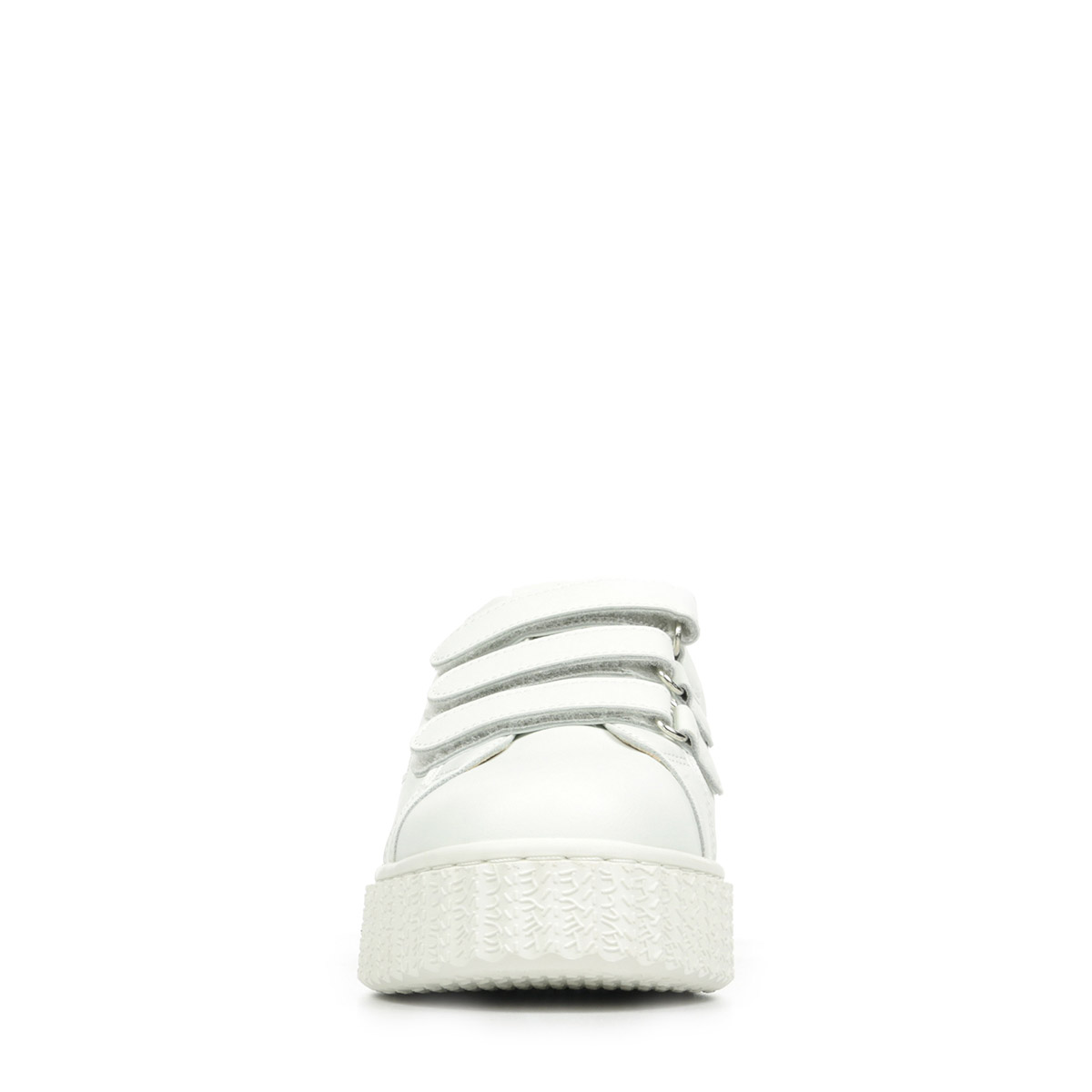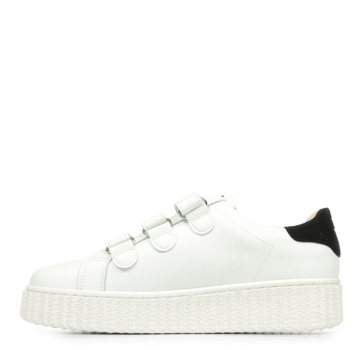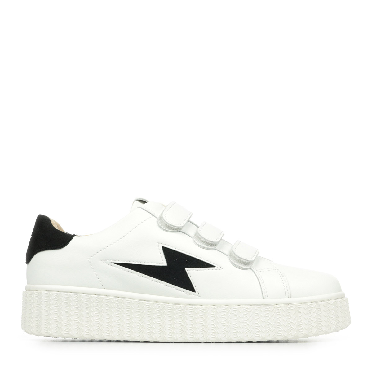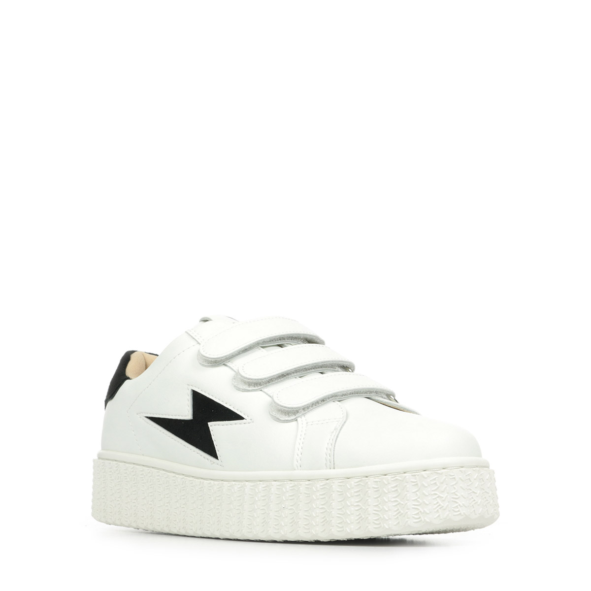 Plus produit : - Baskets en similicuir blanc - Découpe en forme d'éclair et patch arrière en suédine - Fermeture à scratchs blancs - Bout rond - Semelle creepers blanche