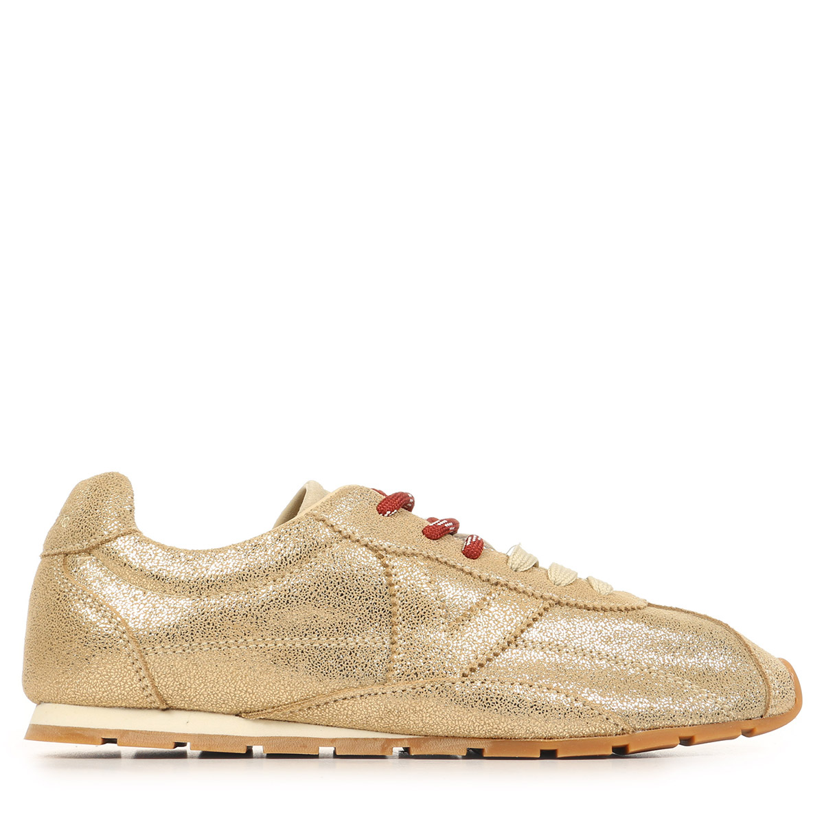 Conçue pour les femmes adultes, cette chaussure basse en cuir doré apporte une touche sophistiquée à toutes vos tenues.