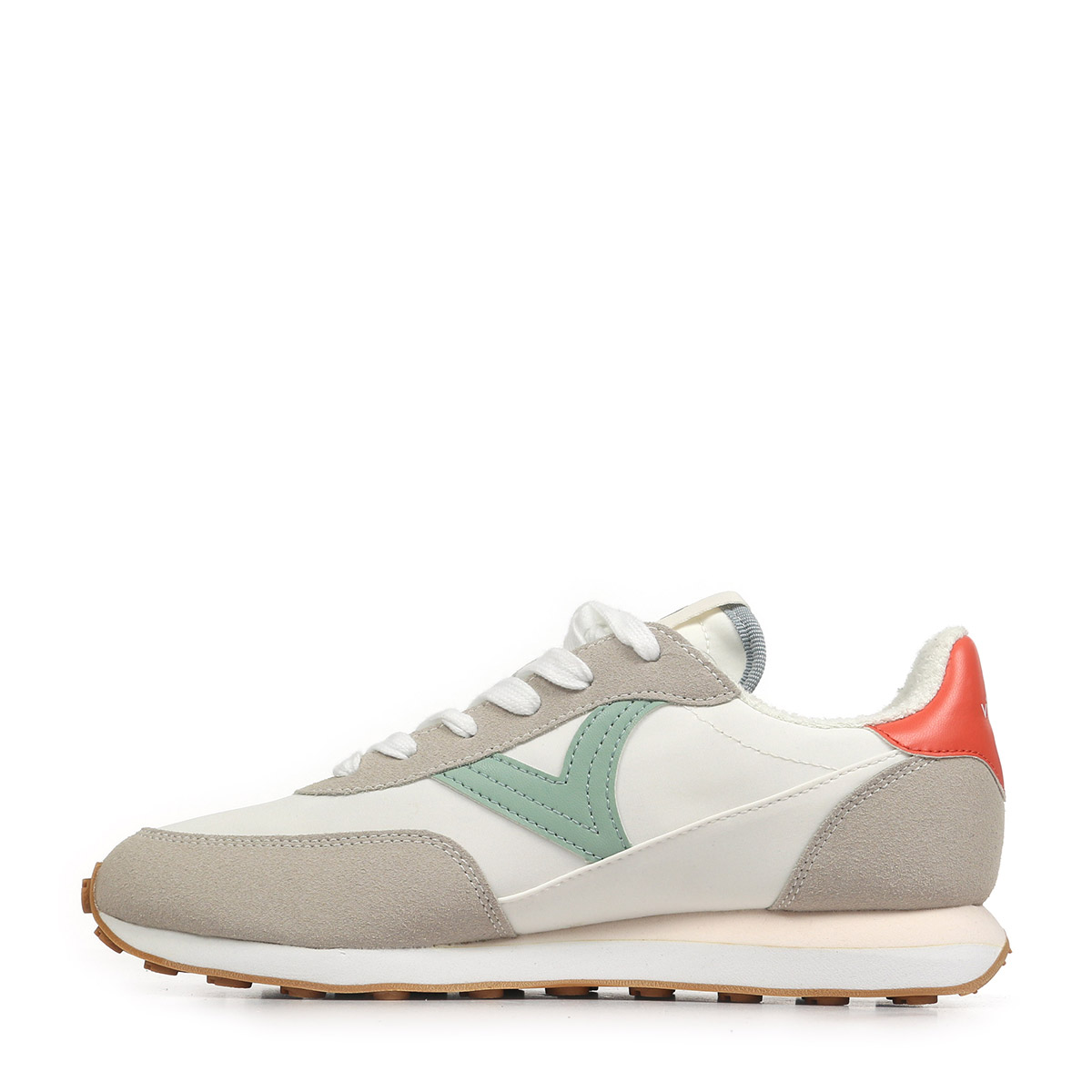Jogger en nylon dans des tons neutres combiné à des empiècements effet croûte de cuir de différentes couleurs. Logo latéral rétro de Victoria. Fermeture par lacets et semelle légère avec relief pour une meilleure adhérence. Voir aussi : Guide de tailles chaussures Victoria